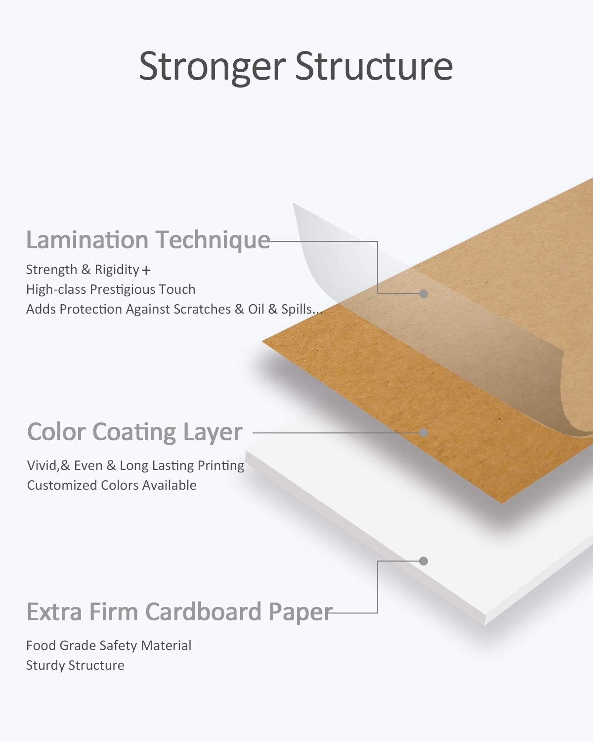 • High Quality:We adopt superior raw material only,and our box quality through the food safty quality text(FDA).Most of the paperboard after printing that you will find inferior Material will give a unhealthy smell, and it will fade after quick friction,Especially pink and black. Our paper was crafted from sustainably sourced, FSC-certified forest, (FSC-C215221) ensuring an eco-friendly choice for your home .