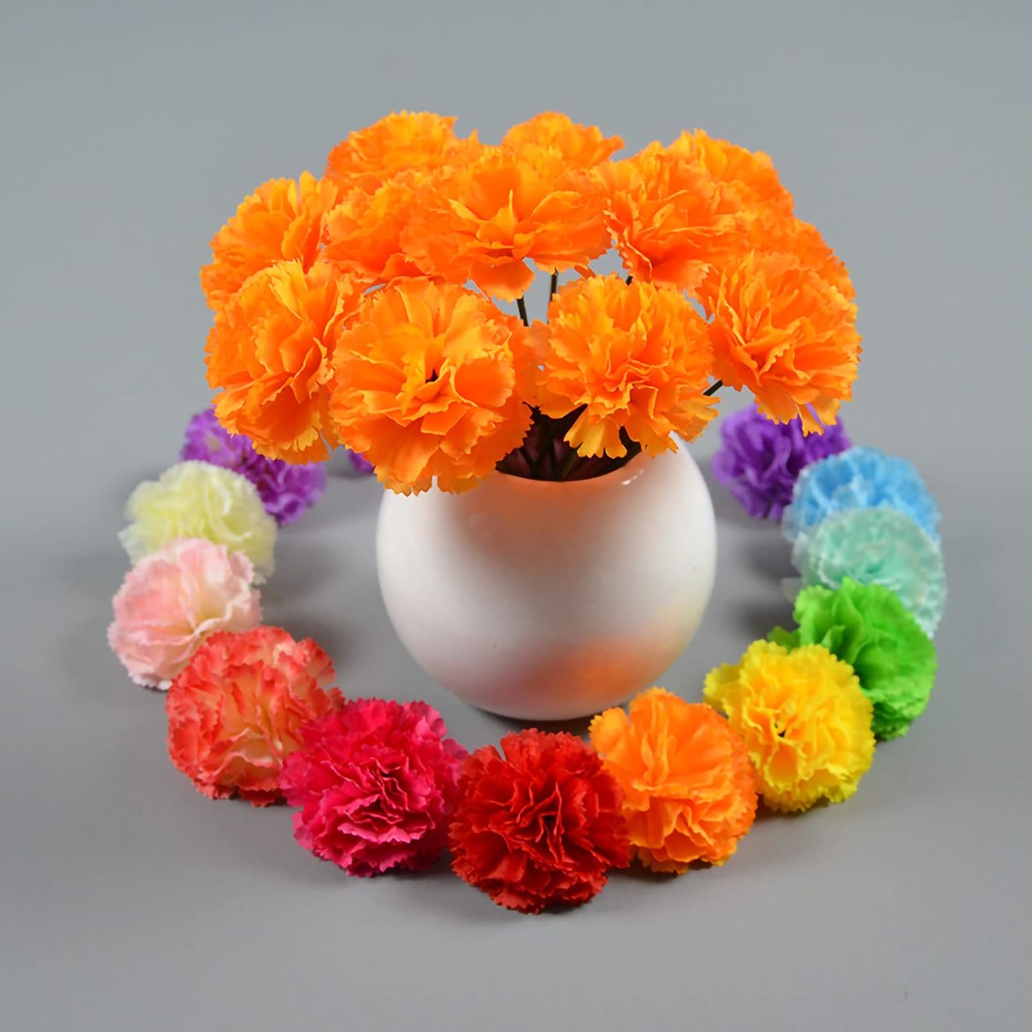 • PREMIUM MATERIALS: The life of a real marigold is short. Why not chose an alternative one. The artificial marigolds are made of silk and plastic, durable for years and remain vivid. The stem is flexible and easy for flower arrangement. These will be your great best decoration in the festival- such as Diwali Halloween Christmas .