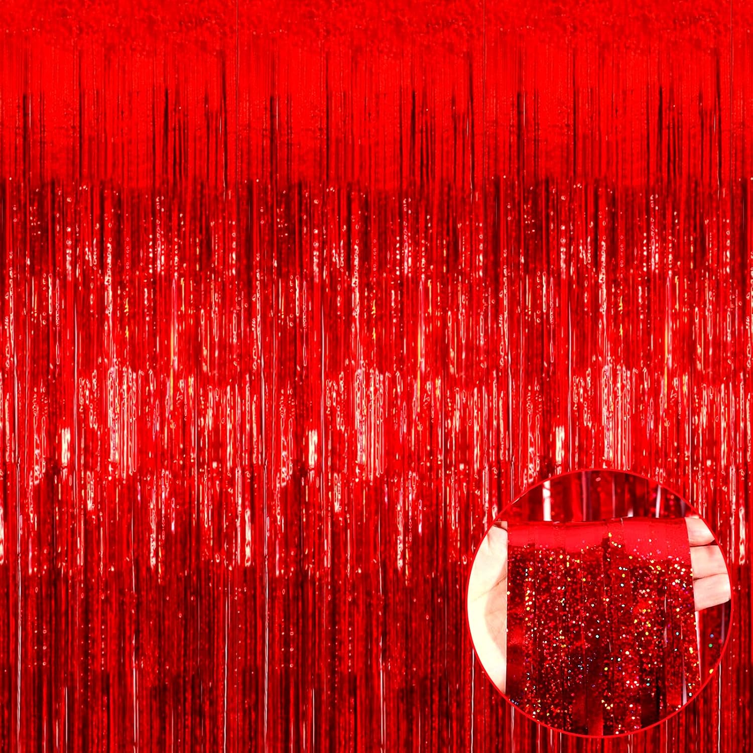 4 Pack Red Tinsel Foil Fringe Curtain Backdrop, 3.28Ft x 8.2Ft Metallic Streamers for Photo Booth Props Wedding Bridal Shower Bachelorette Birthday Halloween Christmas Party Decoration