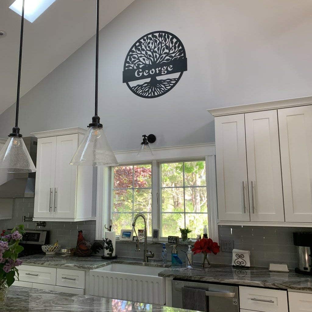 • Circular Frame: The elegant circular frame encircles the tree and name, providing a balanced and cohesive look that enhances the overall design.