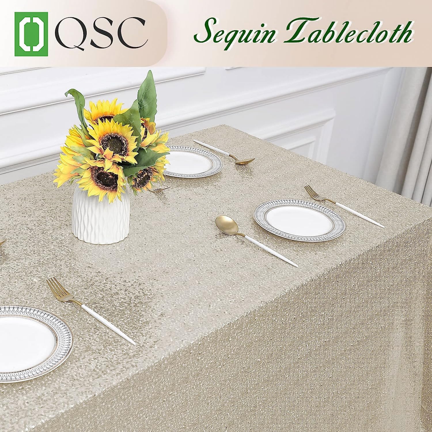 OQSQ Champagne Rectangle Sequin Tablecloth - 60x102 inch, Glitter Drape Table Cloth, Sparkle Sequence Table Overlays for Wedding Birthday Party Baby Bridal Shower