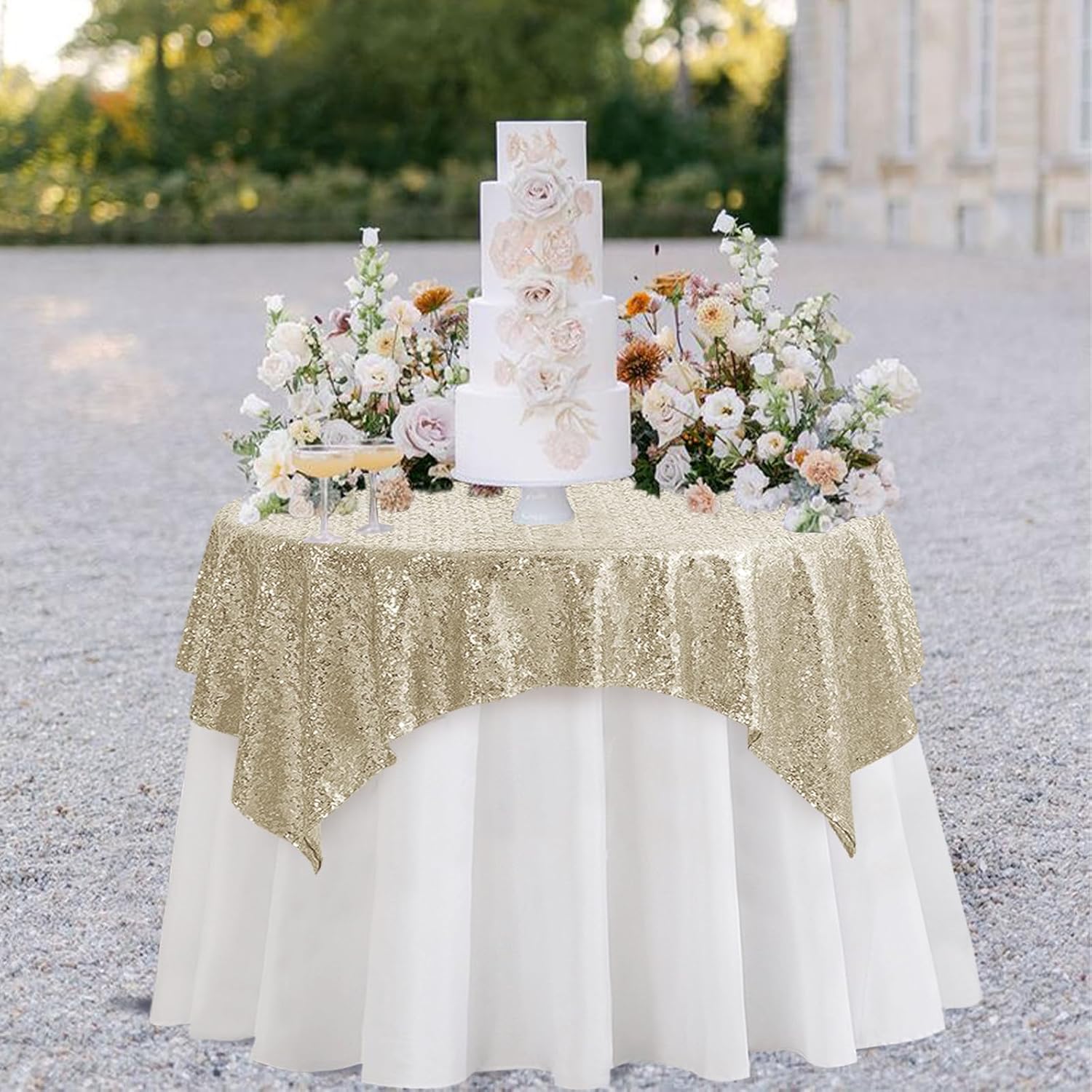 • Package Include: Your package will include 1 champagne tablecloth measuring 50 W by 50 L inch. These sparkly table tablecloths are ideal for wedding, event table decorations for the reception.