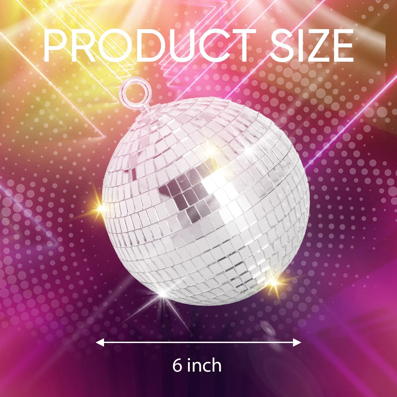 • Trust Worthy Choice: Coming with 6 inch silver mirror disco ball with a pre-installed O ring, hanging disco ball can reflect beautiful lights on the walls and ceiling; Hundreds of mirrors throughout this disco ball make it perfect to light up a space