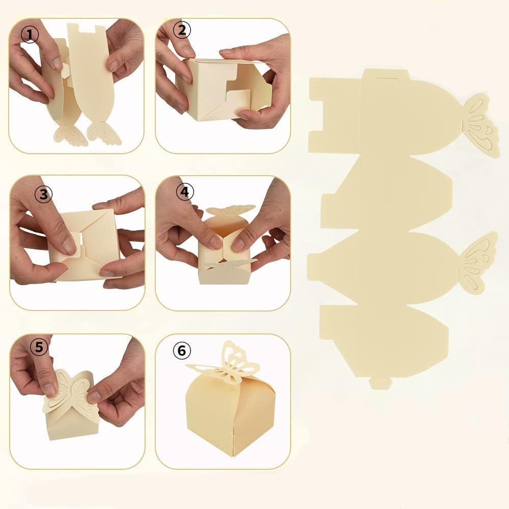 • Material and Size:Light Yellow wedding favor boxes made of high-quality safe paperboard, each cube shape box is about 2.4 x 2.4 x 2.2 inch / 6 x 6 x 5.5 cm , the height is not including the butterfly.