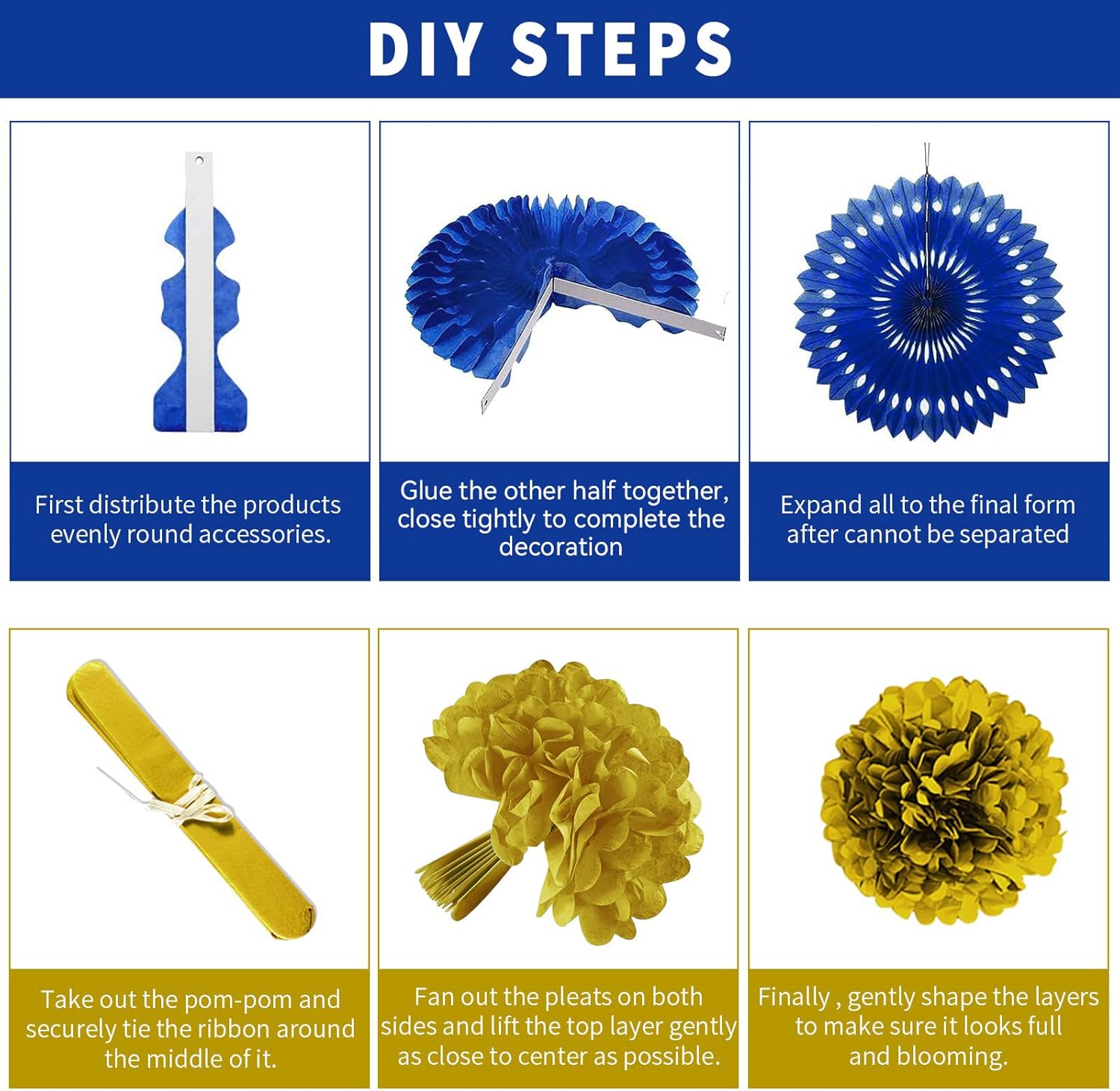 • Blue and Gold Party Decorations: Our blue and gold party decorations for birthday parties is created with the mission to leave everyone with beautiful memories! We can only imagine how amazing set of 23 pcs decoration items can help you light up the beautiful night and make this an unforgettable moment for your kids, yourself, your family, and your friends.