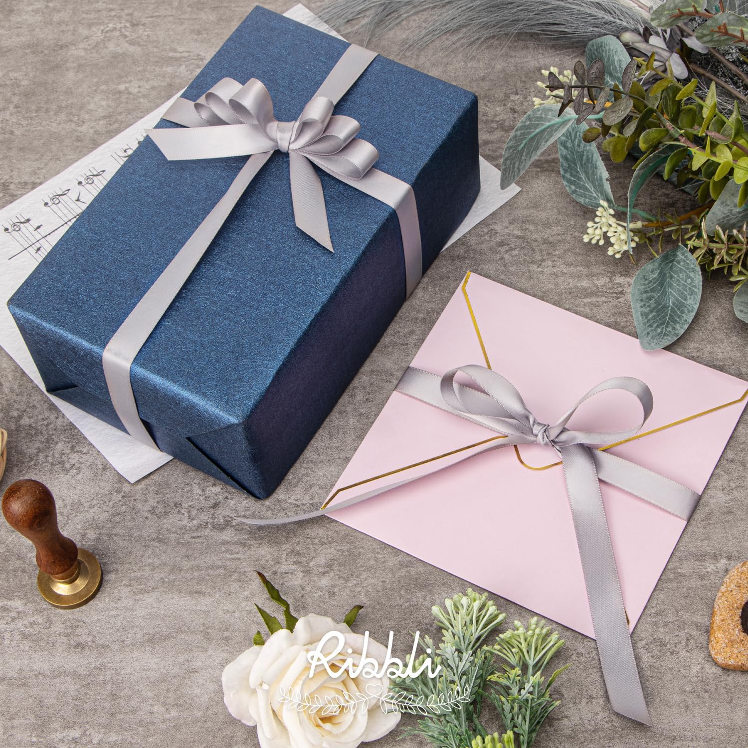 Ribbli Silver Satin Ribbon 5/8 inch x Continuous 25 Yards,Double Faced Satin Use for Craft, Gift Wrapping, Christmas Ornaments, Hair Bows, Bouquet Bows