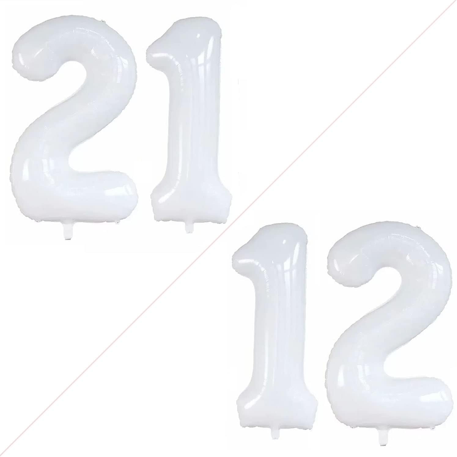 GOER Number 12 Balloons for 12th Birthday Sweet 12 Party Decorations,42 Inch Jumbo Foil Helium 21 Balloons for 21st Birthday Party Decoration (White)