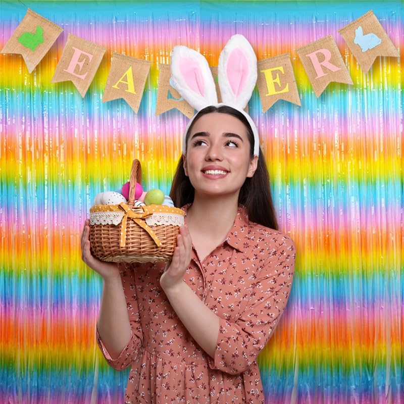 BRAVESHINE Colourful Tinsel Foil Fringe Curtains - 2Pcs 3.2x8.2ft Holidays Photo Booths Party Streamers Backdrop for Easter Princess Pastel Unicorn Birthdays Christmas Bridal Shower Party Decorations