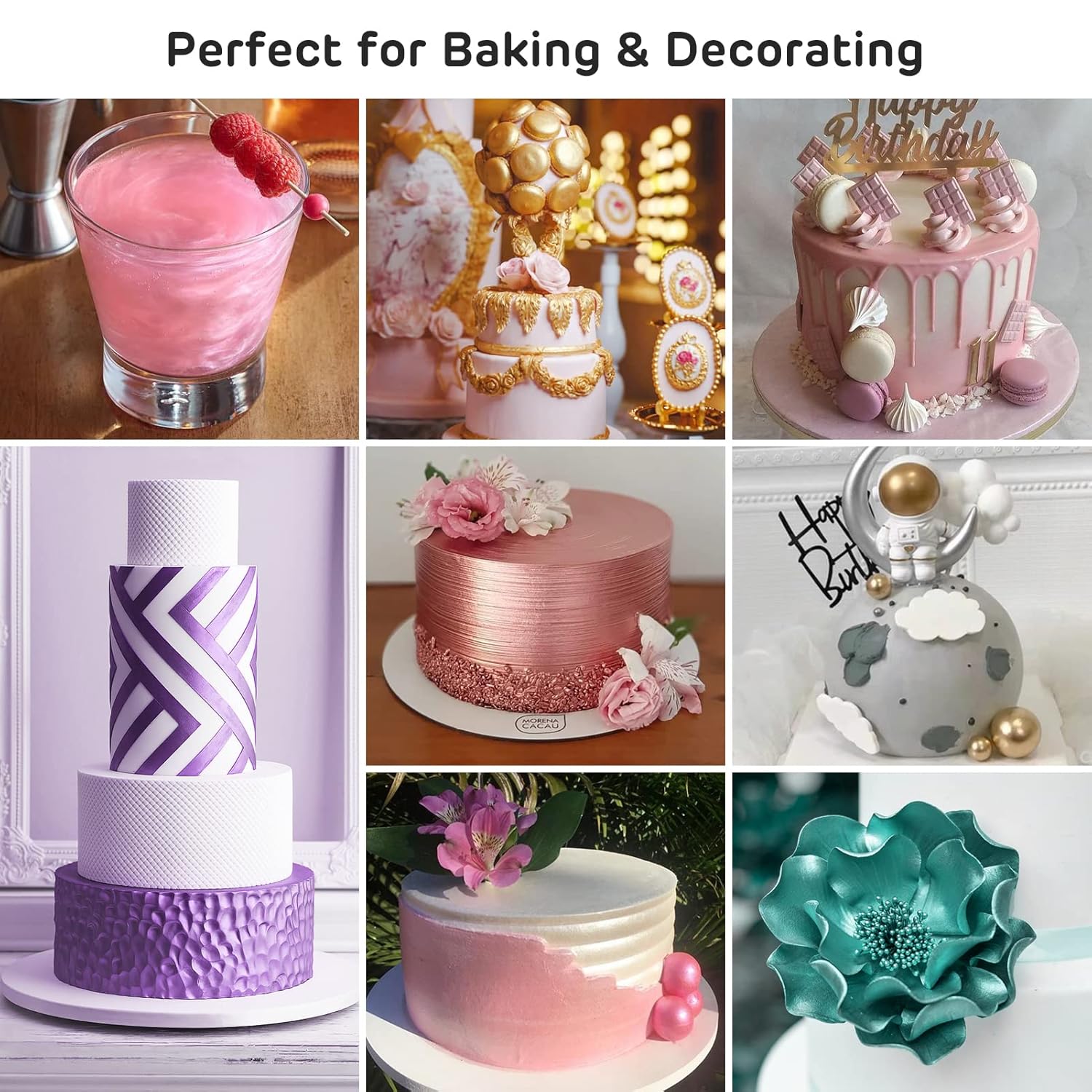 • SAFE & EDIBLE LUSTER DUST -- Adopt food grade ingredients (Mica-based Pearlescent Pigments, Titanium Dioxide), non toxic and edible, no flavor, won't change the taste of your recipe