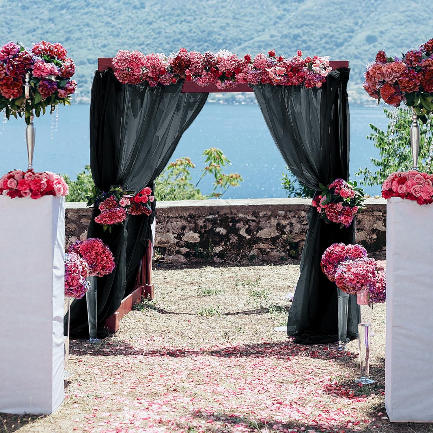 • Wrinkle-Free Fabric: The wedding curtain backdrop is made of 100% sheerness and thickness chiffon fabric, looked simple and elegant, touch silky soft and used sturdy. Chiffon fabric is easy to clean. Black chiffon curtains allow seamless integration with any color scheme via decorations