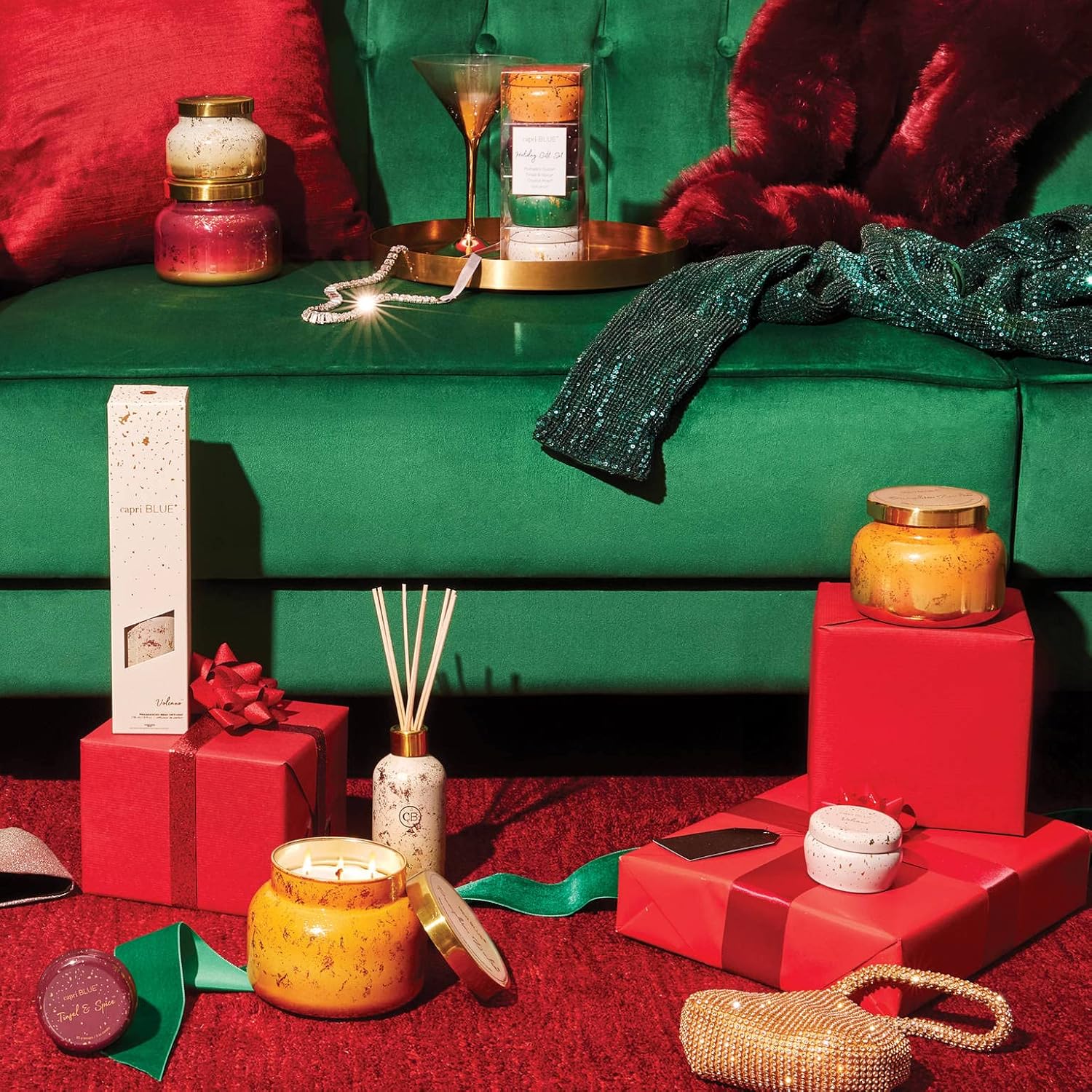 • About Us: Inspired by contemporary fashion trends, Capri Blue creates exciting new products for every season. Our Oversized Glimmer Jar Candles are also available in Capri Blue Volcano, Tinsel & Spice, and Crystal Pine fragrances.