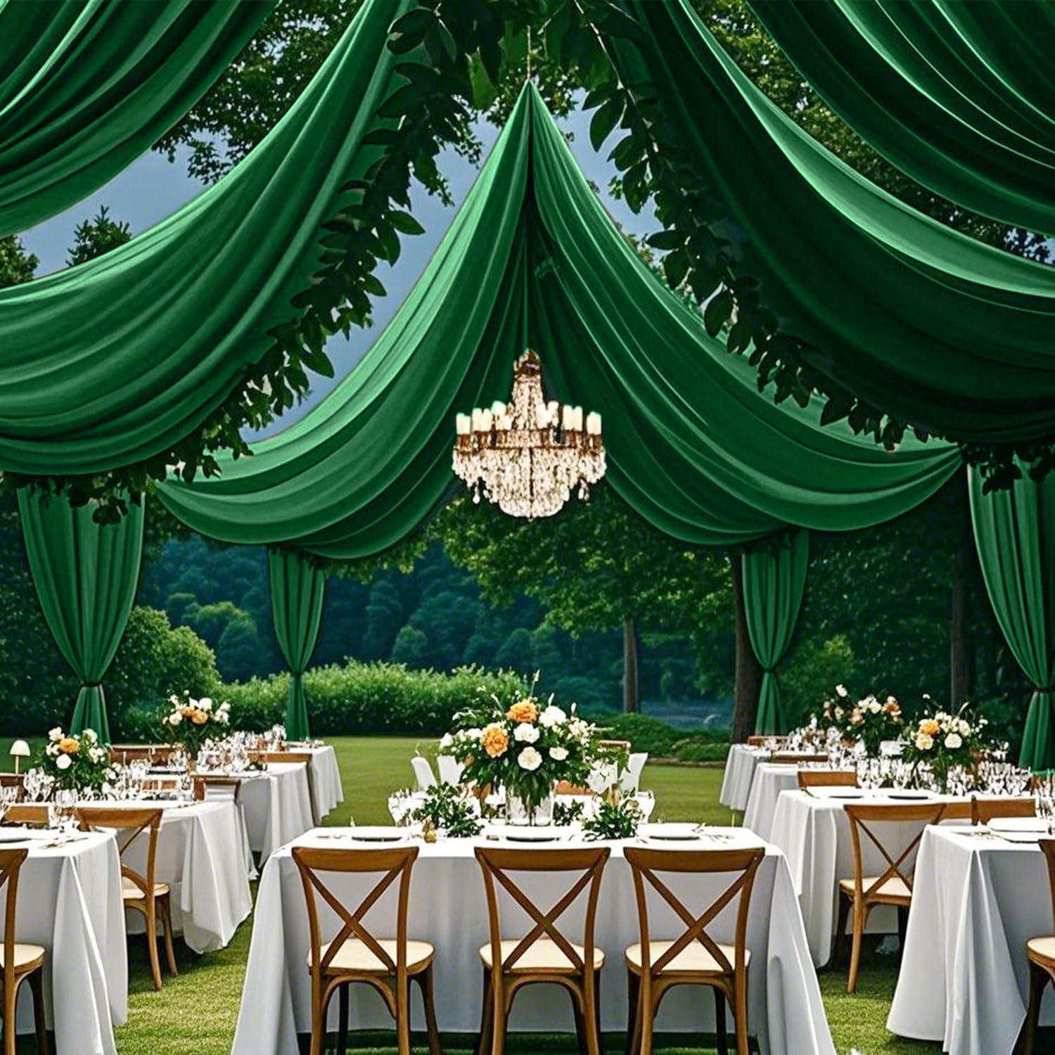 FUHSY Emerald Green Ceiling Drapes Wedding Arch Drapes Chiffon Backdrop Curtains 5FTx20FT 2 Panels Sheer Ceiling Curtains for Wedding Party Bridal Archway Chiffon Fabric Drapery Stage Decorations