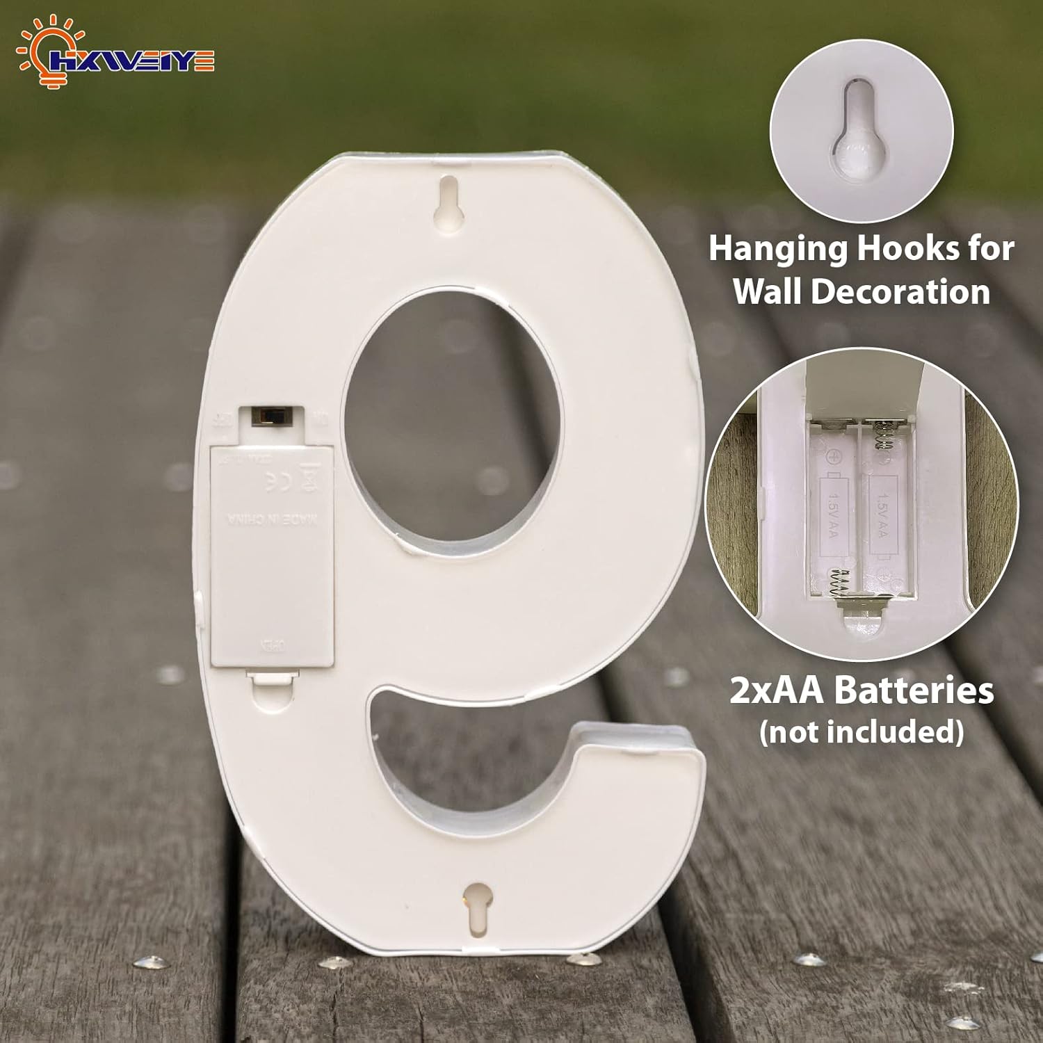 HXWEIYE Light Up Numbers-9, LED Marquee Number Lights Sign 26 Alphabet and 10 Number for Party Bar Birthday, Light Up Letters Battery Powered Warm White Christmas Decoration Numbers Lights