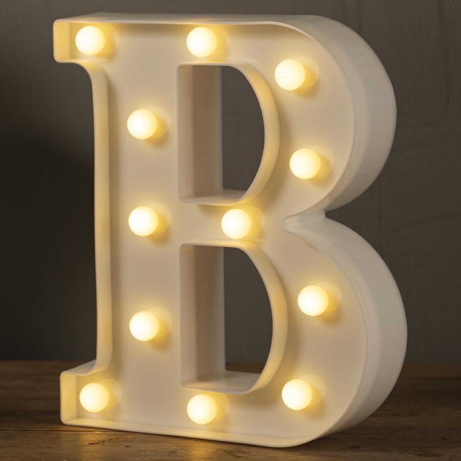 LED Marquee Letters Lights Sign-B, HXWEIYE Led Letters Lights 26 Alphabet, Light Up Number 0-9 Letters Sign for Party Home Birthday Anniversary Battery Powered Lighted Letters(Warm White)