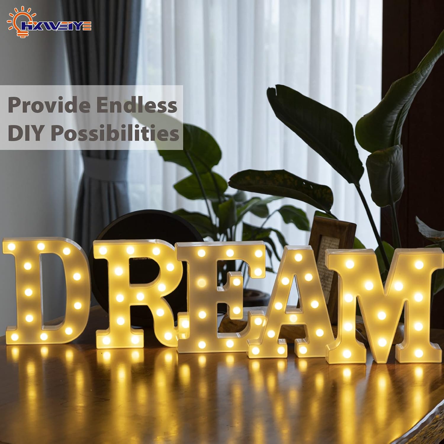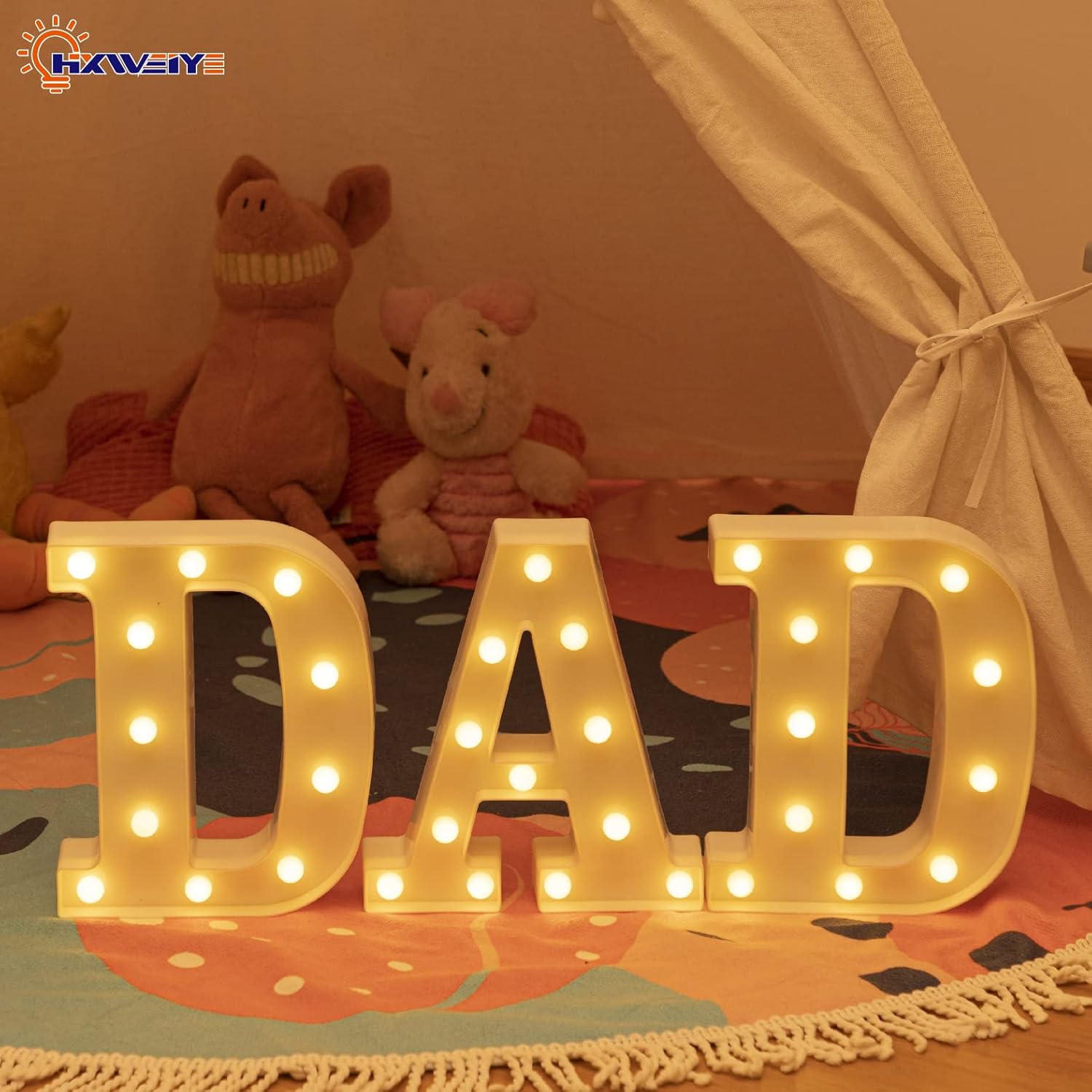 HXWEIYE LED Marquee Letters - 26 Alphabet & 10 Number Big Lights for Party, Birthday, Bar, Christmas Decor (Warm White, Battery Powered)