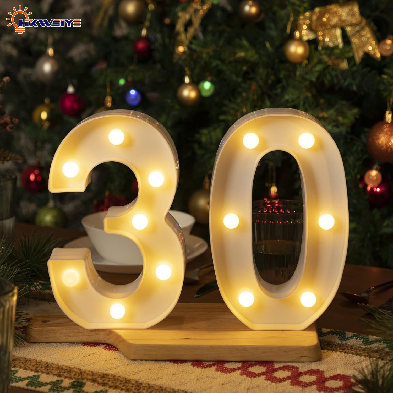 HXWEIYE Light Up Numbers-3, LED Marquee Number Lights Sign 26 Alphabet and 10 Number for Party Bar Birthday, Light Up Letters Battery Powered Warm White Christmas Decoration Numbers Lights