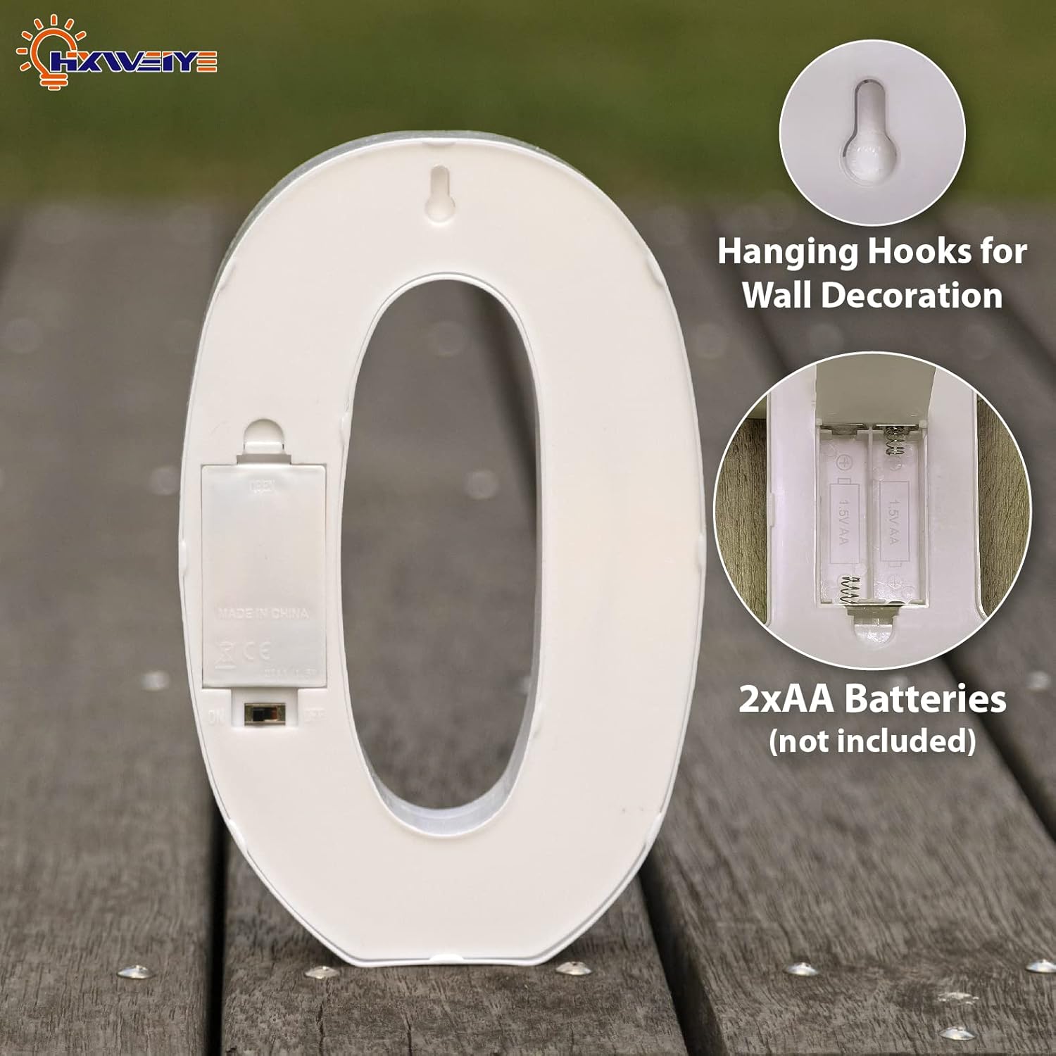 HXWEIYE Light Up Numbers-0, LED Marquee Number Lights Sign 26 Alphabet and 10 Number for Party Bar Birthday, Light Up Letters Battery Powered Warm White Christmas Decoration Numbers Lights