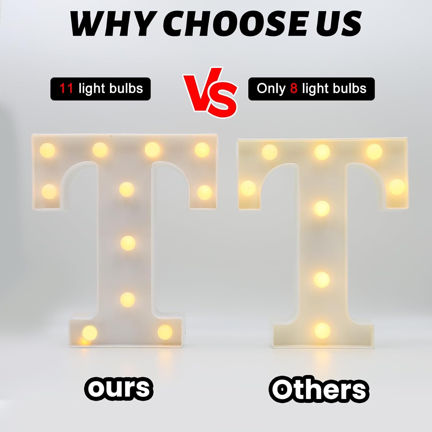 HXWEIYE Light Up Letters T, LED Marquee Letters Light Sign 26 Alphabet and 10 Number Big Lights Letter for Party Birthday Bar Battery Powered Christmas Decor Letter Lights (Warm White)