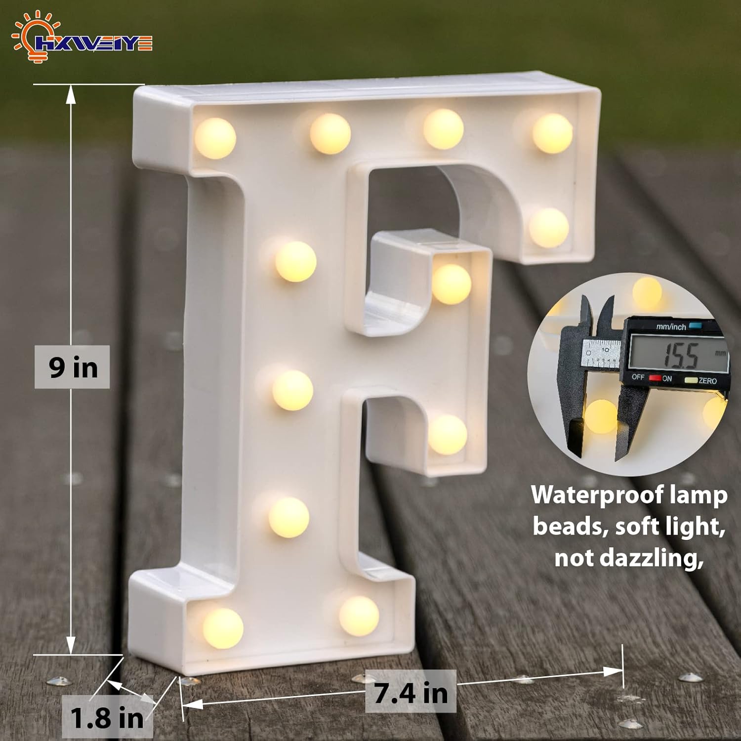 HXWEIYE LED Marquee Letters Lights Sign F, 26 Alphabet Light Up Letter and Number 0-9 Number Warm White Led Letters for Bar Party Birthday Home Wedding Décor