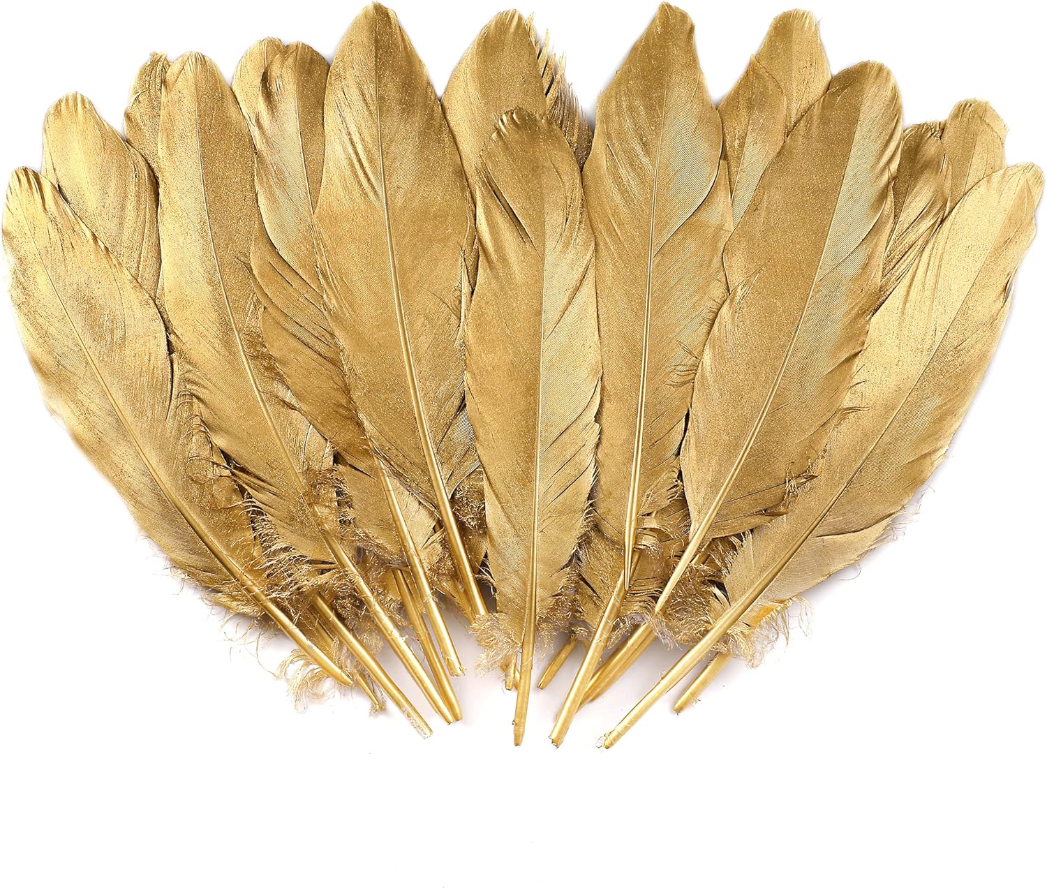 Larryhot Gold Goose Feathers for Crafts - 6-8 inch 60 pcs Natural Feathers for Wedding Party Decorations,DIY Crafts and Clothing Accessories (Gold)
