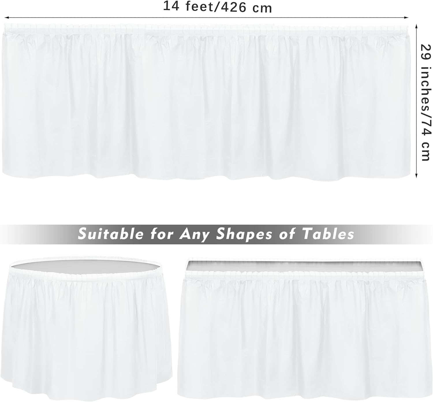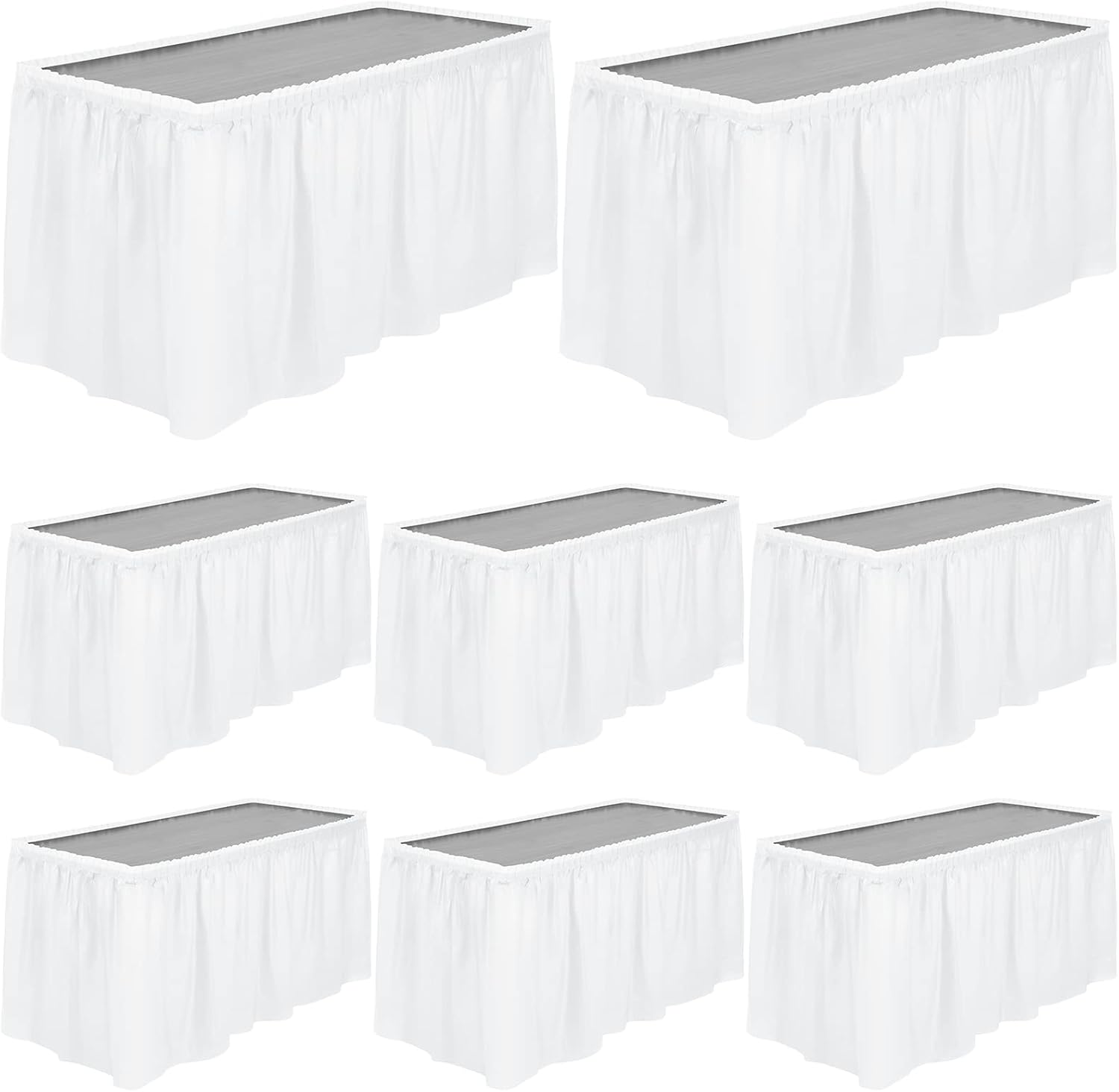 TURSTIN 8 Pieces White Plastic Table Skirts 14 Feet x 29 Inch for Rectangle Tables Fitted Tablecloth Disposable Table Cover for Birthday Party, Events, Banquette Baby Shower