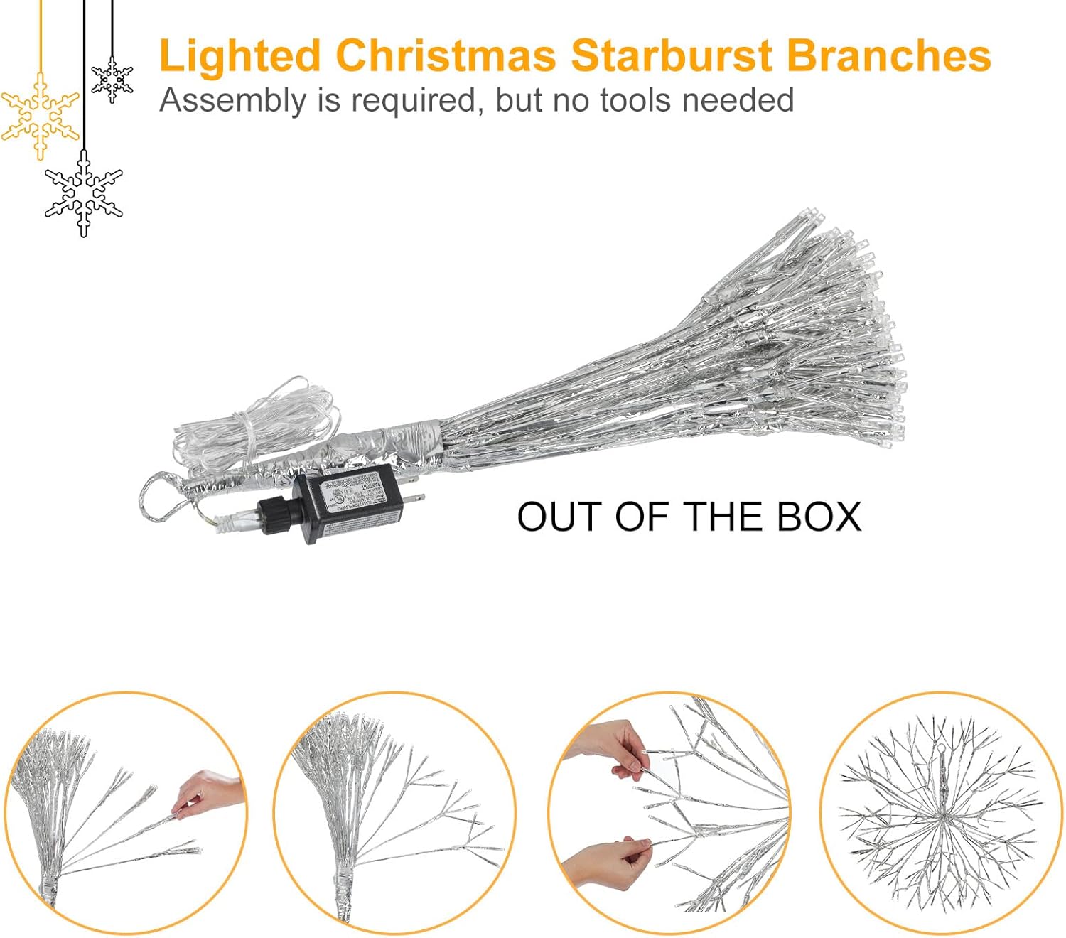 Christmas led Sparkle Ball Hanging Outdoor décorations -Haning Twig Ball,Snowflake Ornament Lights Indoor Outdoor Festive Holiday Décor 24Inch (Cool White)