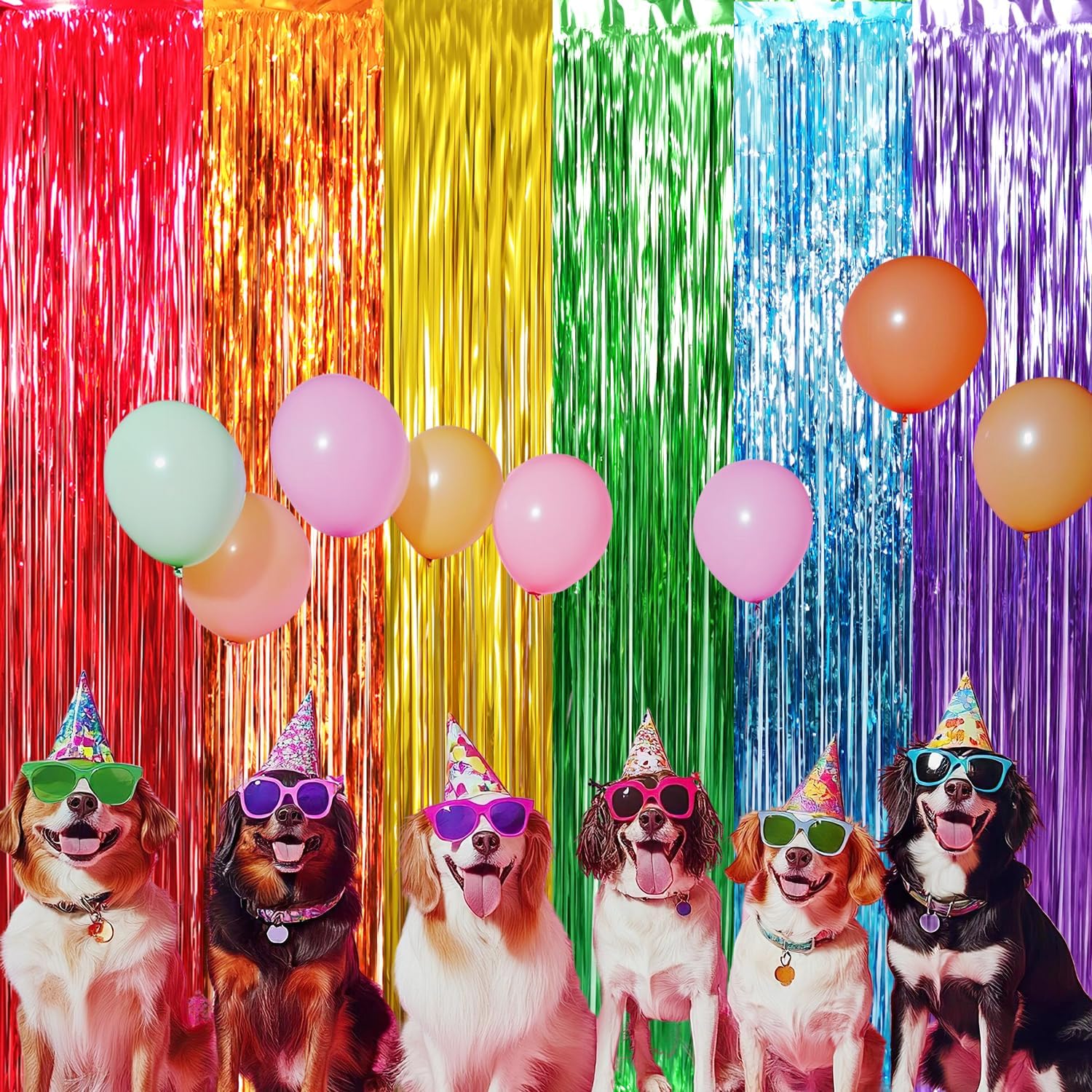 GOER 6.5 ft x 8.2 ft Metallic Tinsel Foil Fringe Curtains,Pack of 2 Party Streamer Backdrop for Birthday,Graduation Decorations and New Year Eve (Rainbow Colors)