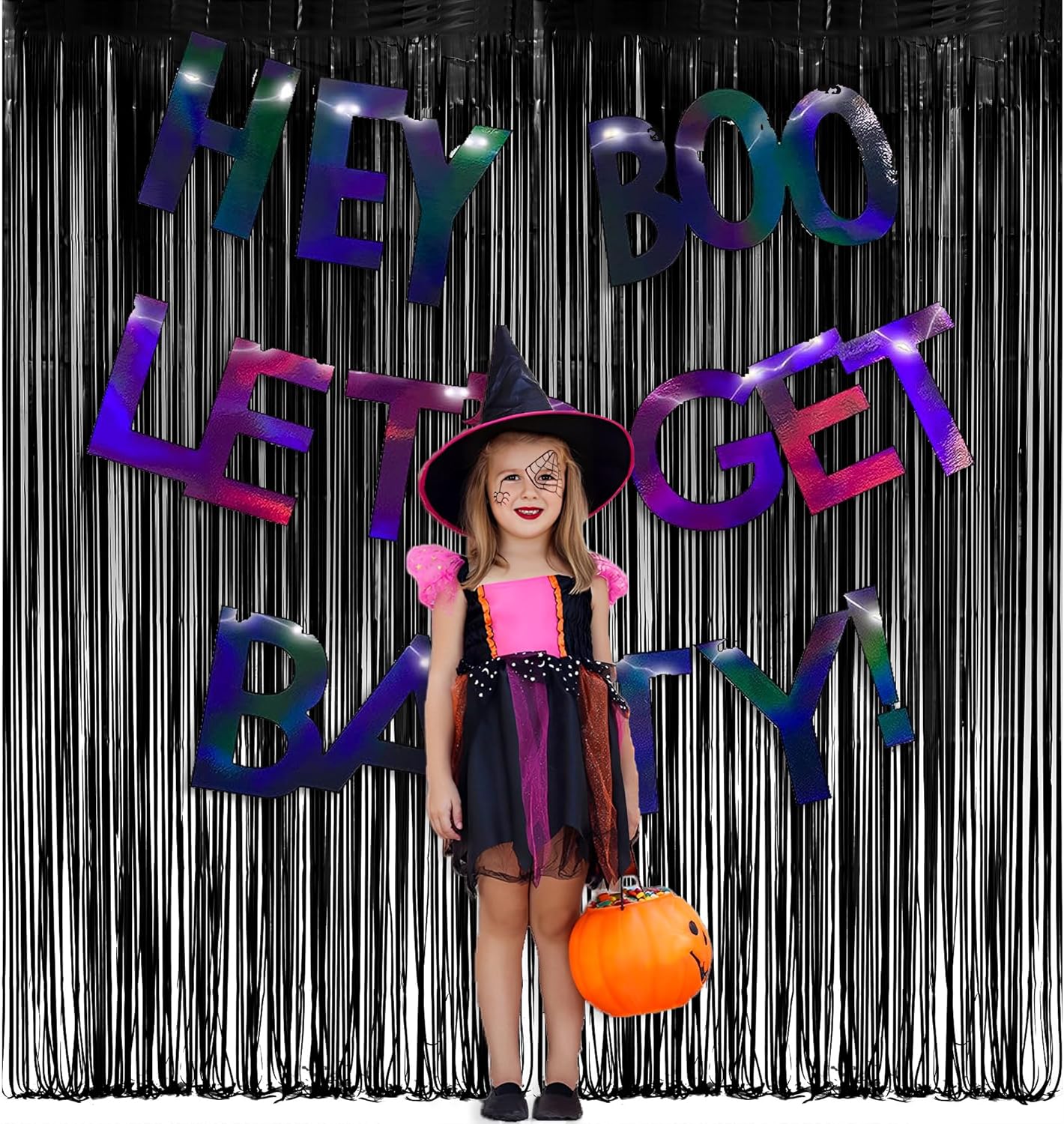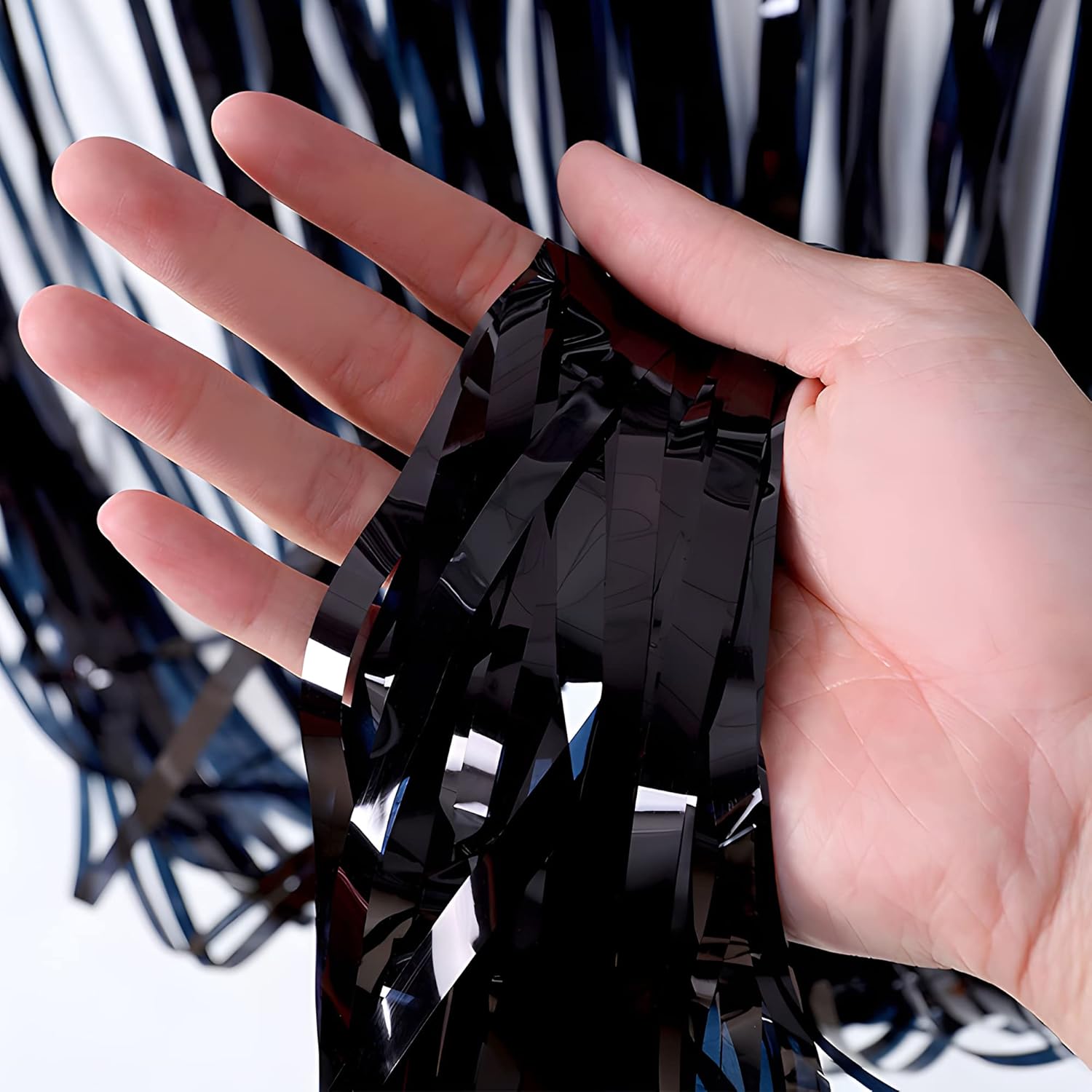 • Greatril brand 2 packs, 3.2ft x 8.2ft foil fringe tinsel curtain good for gothic wednesdays stranger theme halloweens party decoration.