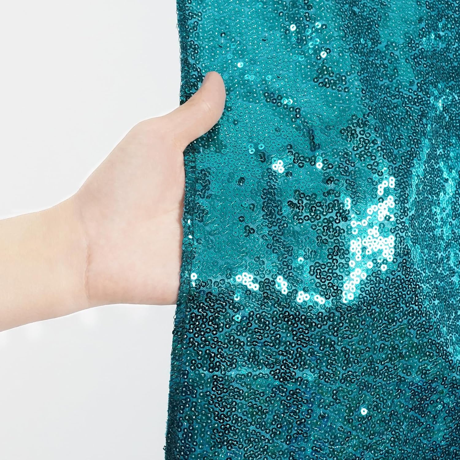 Poise3EHome 8Ft x 8Ft Teal Sequin Backdrop Curtain, Glitter Thick Satin Sequin Background Drapes, Opaque Sparkly Backdrop Curtain, Sequin Backdrop for Xmas Thanksgiving Wedding Party Decor