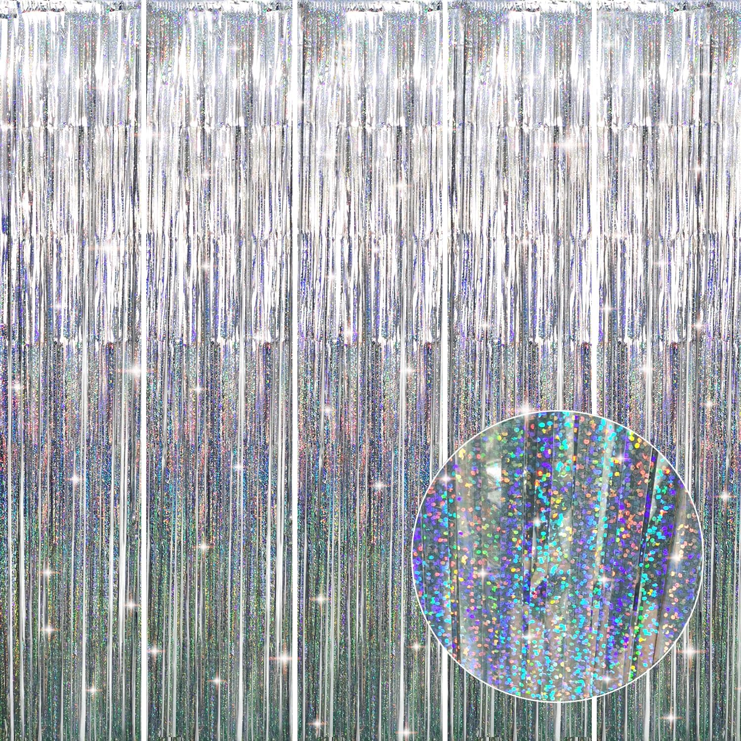 • Package Includes:5 pack shiny silver foil fringe curtain,3.2 ft x 8.2 ft each,suitable for hanging on a door or coverage a wall fully
