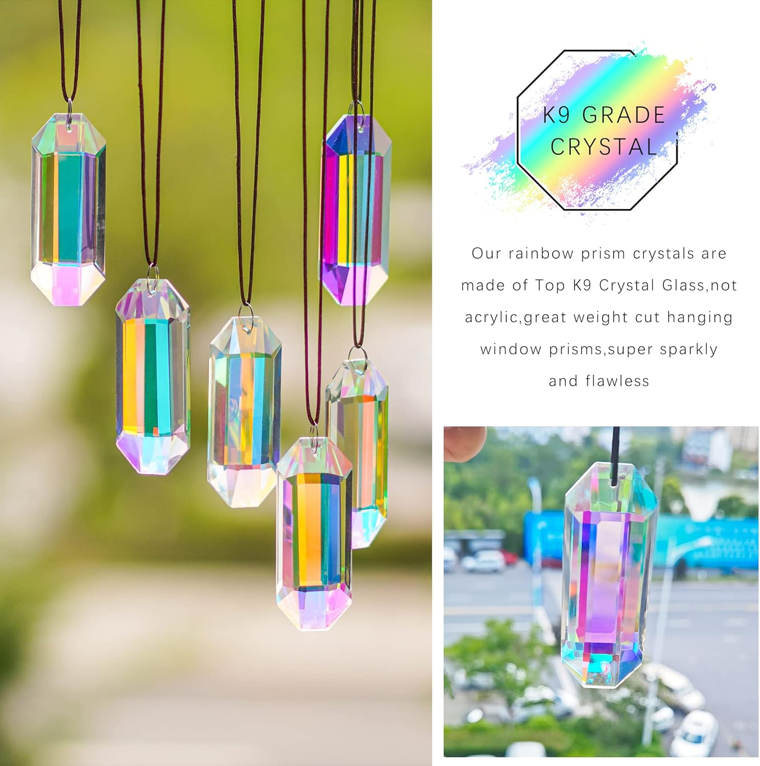 • [PREMIUM QUALITY CRYSTAL] - Our rainbow prism crystals are made of Top K9 Crystal Glass, not acrylic, great weight cut hanging window prisms, super sparkly and flawless