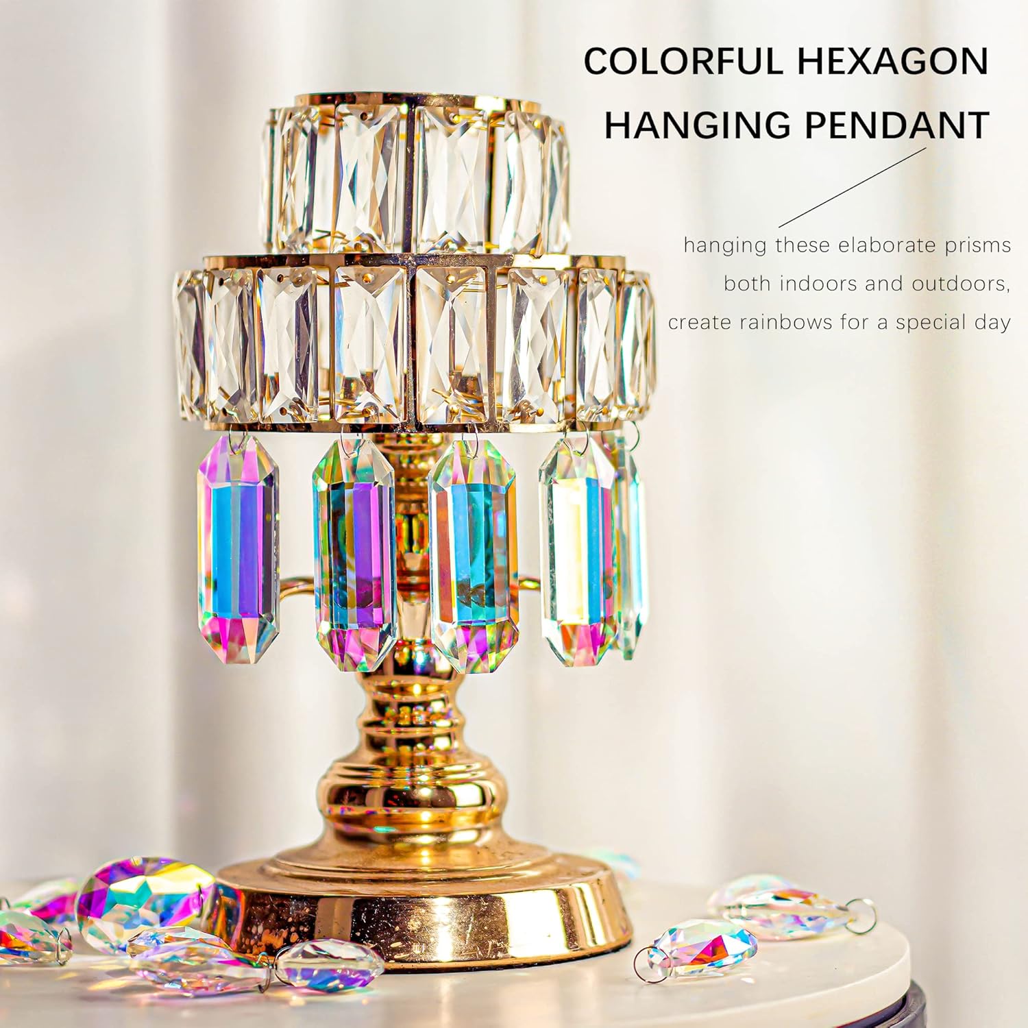 • [PERFECT CRYSTAL ORNAMENTS] - The AB-Colors hexagon suncatcher is suitable for decor.You can use these elaborate prisms both indoors and outdoors,they will create a rainbow in the room after being illuminated by the sun, very cute and dreamy