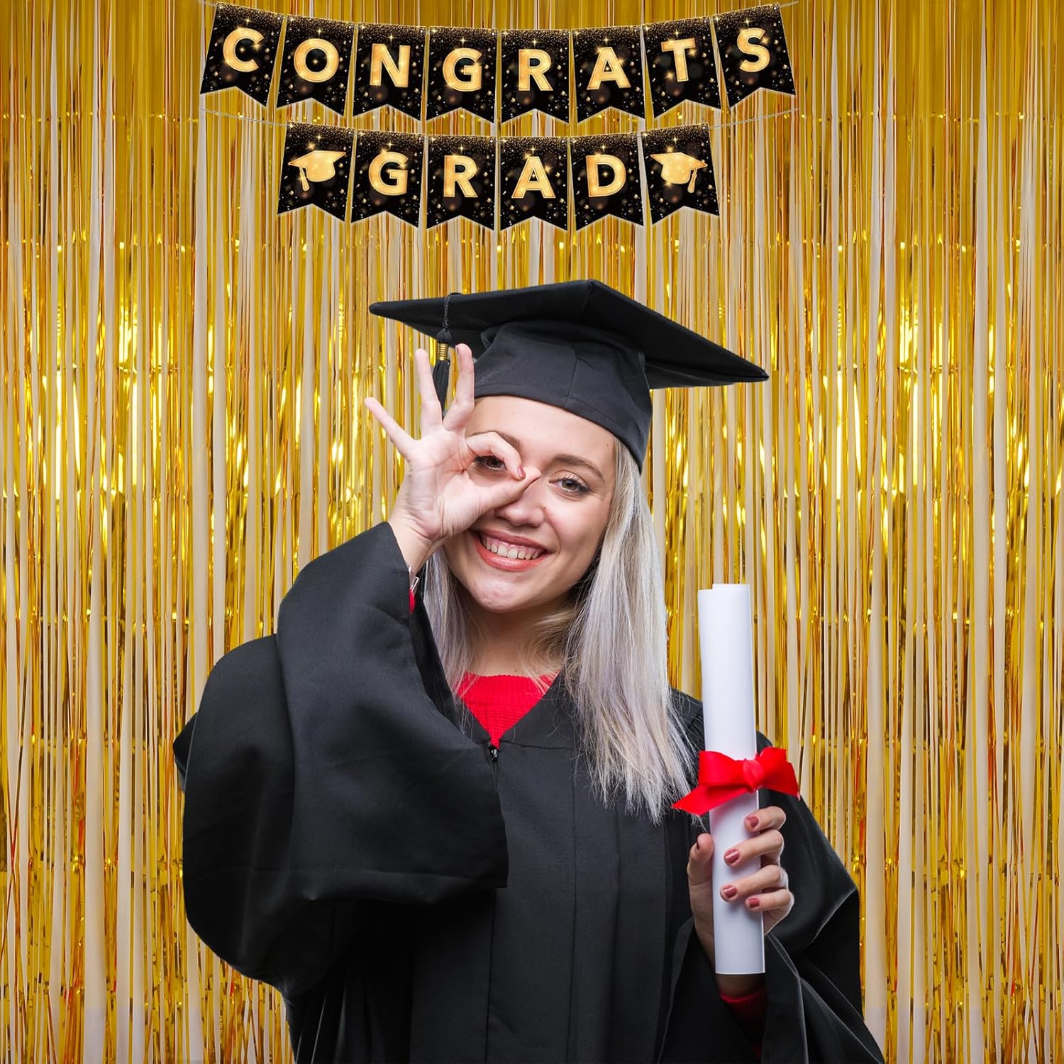 • Value Pack of 2: Includes 2 packs gold foil fringe curtains, enough to decorate your party backdrop and save your money. Each curtain is 3.2ft x 8ft. You can use 2 packs of the curtains side by side to make the backdrop larger, or overlap 2 pack of curtains to achieve a fuller and better look.