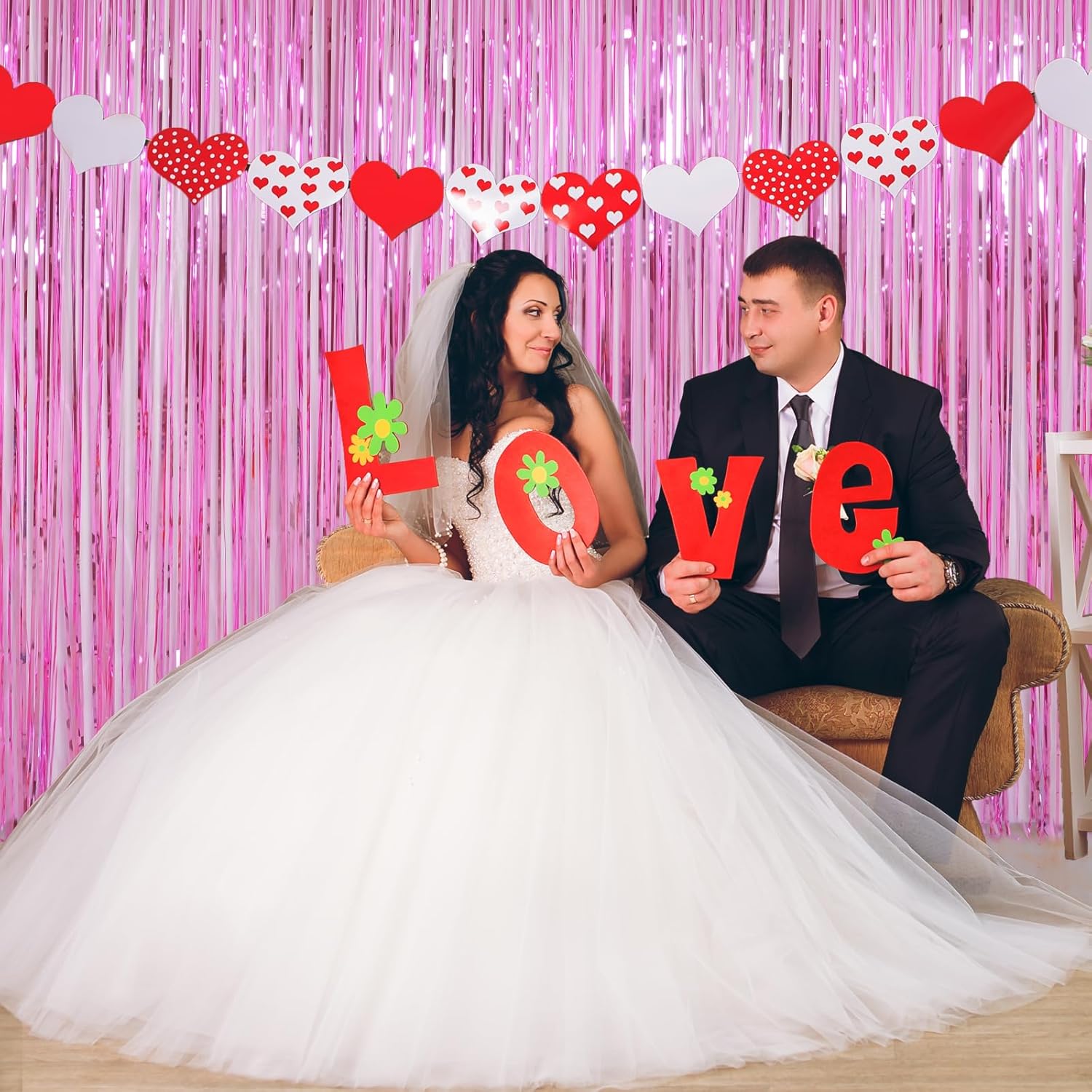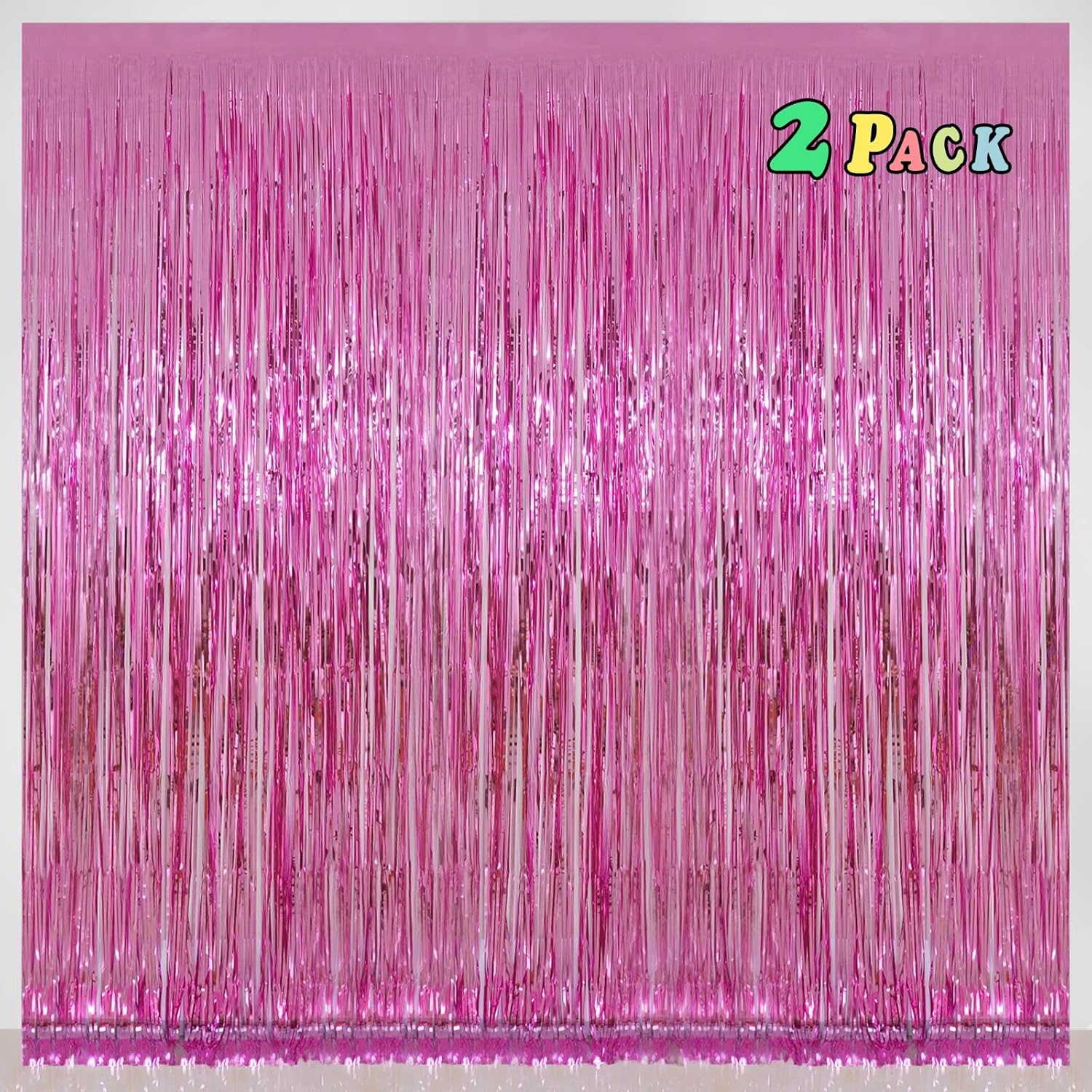 • Value Pack of 2: Includes 2 packs pink foil fringe curtains, enough to decorate your party backdrop and save your money. Each curtain is 3.2ft x 8ft. You can use 2 packs of the curtains side by side to make the backdrop larger, or overlap 2 pack of curtains to achieve a fuller and better look.