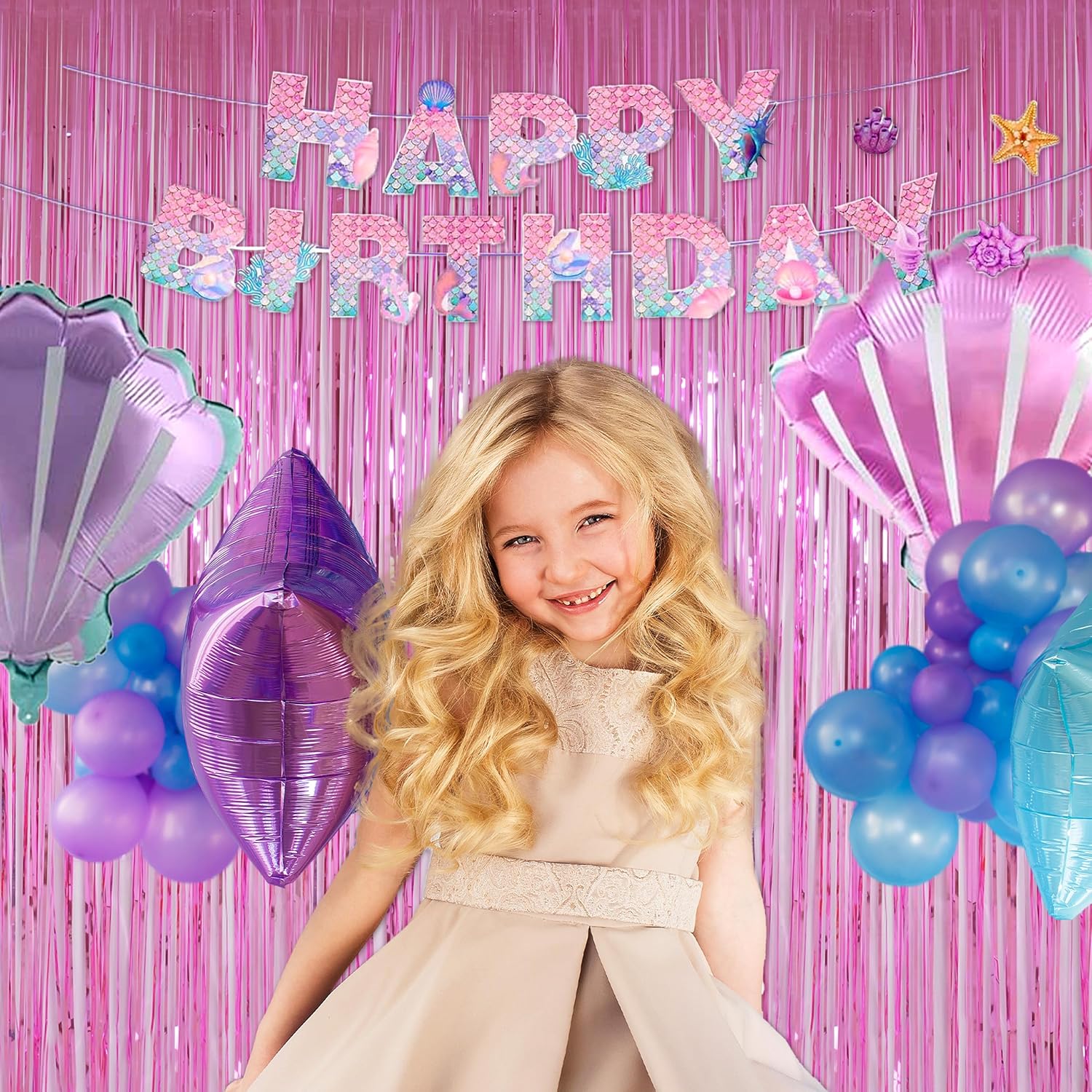 Pink Foil Fringe Curtains Tinsel Backdrop, Melsan 3.2 x 8 ft Metallic Tinsel Curtains Party Decorations for Baby Shower,Babbie, Mermaid Themed Birthday Party Backdrop - Pack of 2