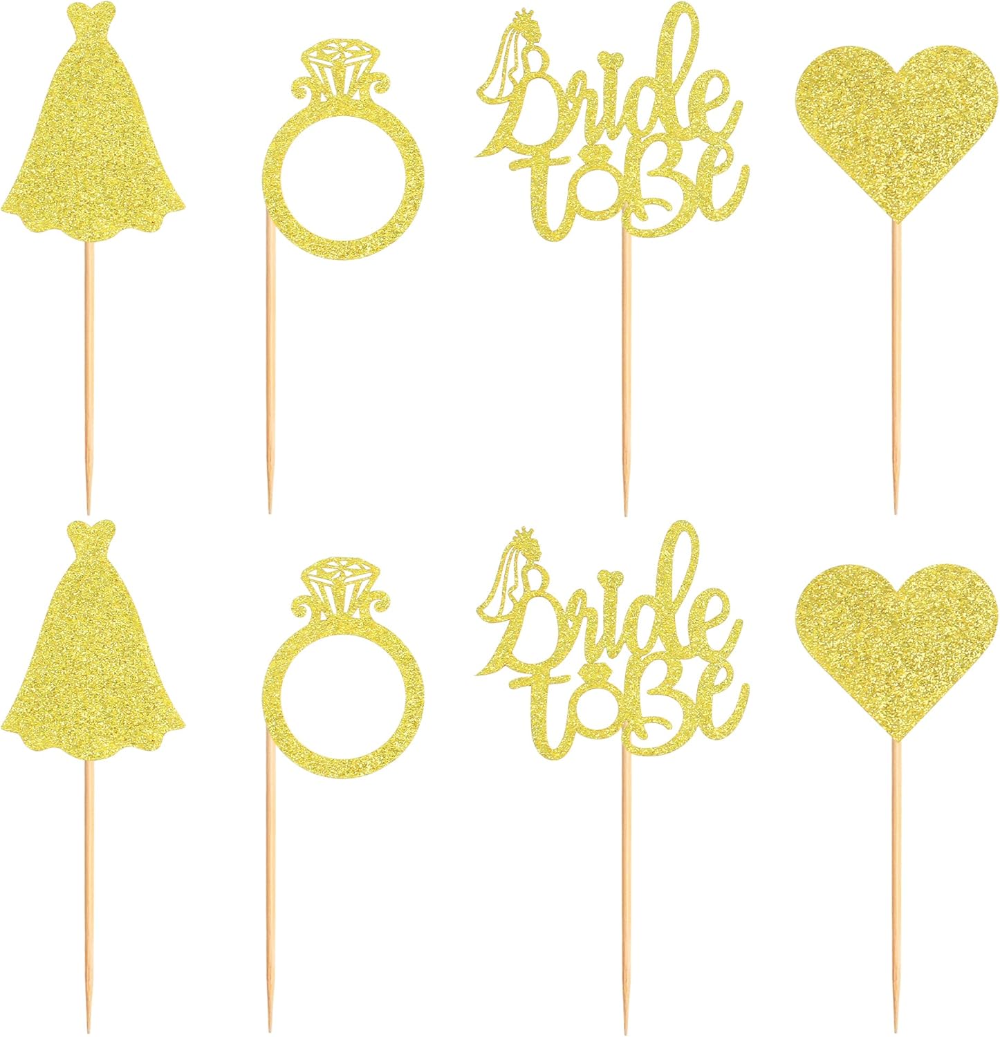 • 🎀PACKAGE INCLUDED: 24pcs gold glitter bride to be cupcake toppers, 4 styles, 6pcs of each style.