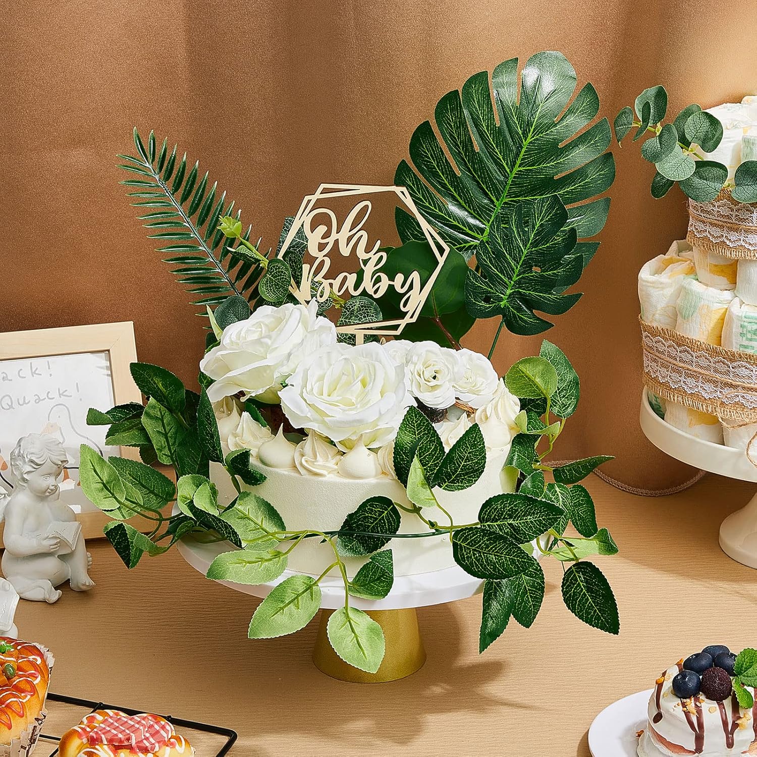 • Practical Combination Set: the package comes with 1 piece of cake topper, 6 pieces of fake roses, 4 pieces of white asters , 10 pieces of eucalyptus leaves, 5 pieces of monstera leaves, 5 pieces of iron leaves, 2 pieces of small eucalyptus and 1 piece of rose leaf rattan, a nice combination set to satisfy your diverse decoration demands