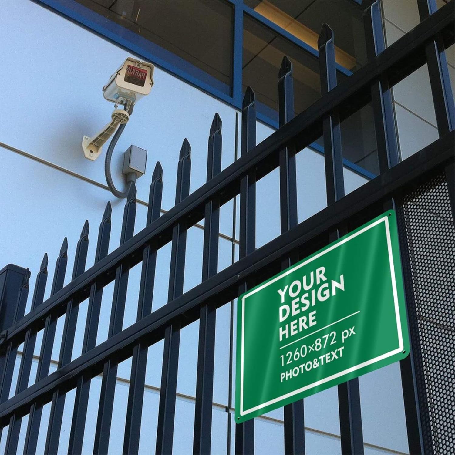 • 12 x 8 inch aluminum custom metal sign with 4 pre-drilled holes on the side that can be easily attached to any surface such as walls, doors or fences with cable ties or screws.
