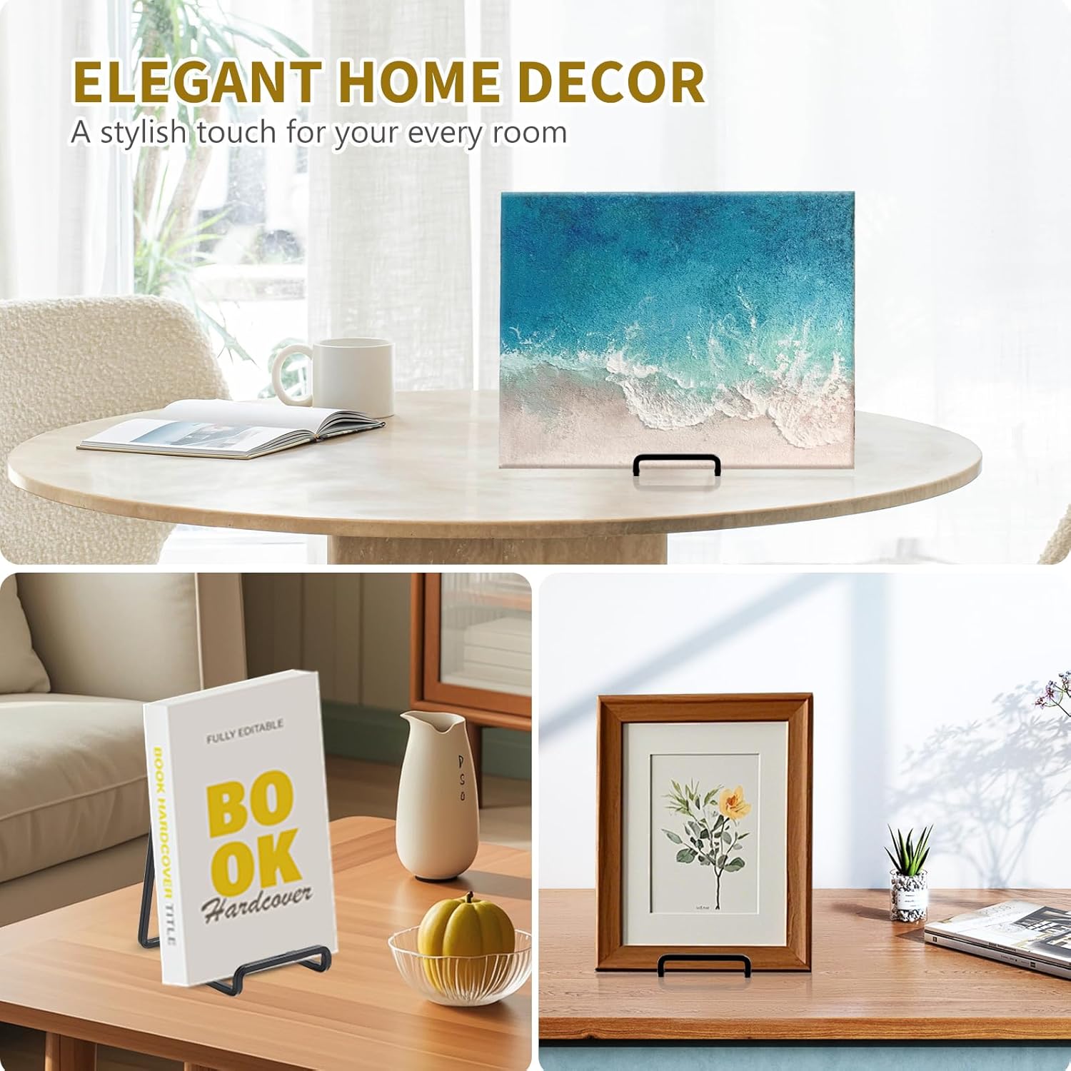 • Elevate Interior Decor - Metal frame holder stand is a fine option for spicing up a empty desktop. Minimalist iron design, classic matte coated surface, beautiful and generous, whether it is on the desk, shelf, coffee table, or kitchen countertop, always exudes elegance! It is not only a bracket, but also a decorative ornament.