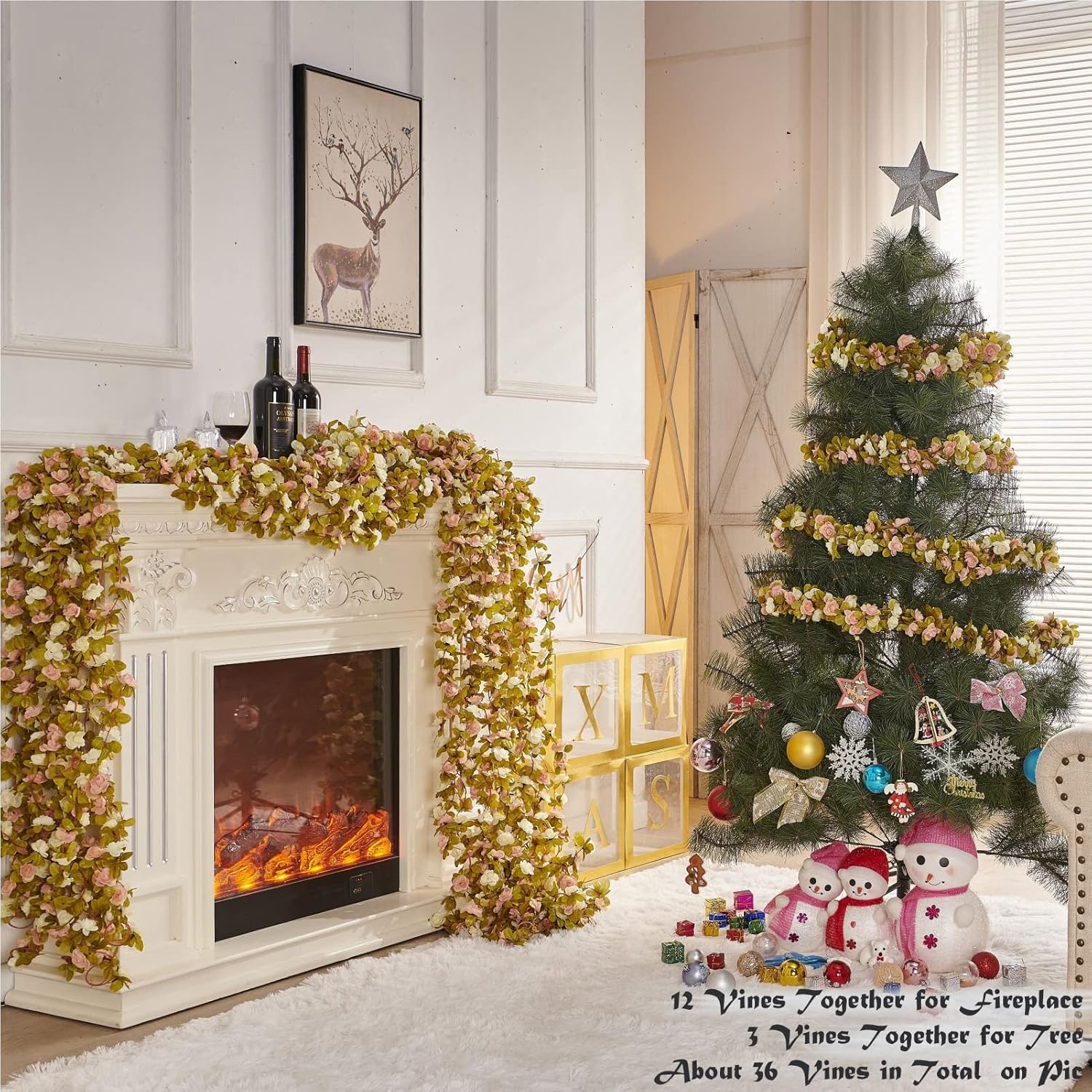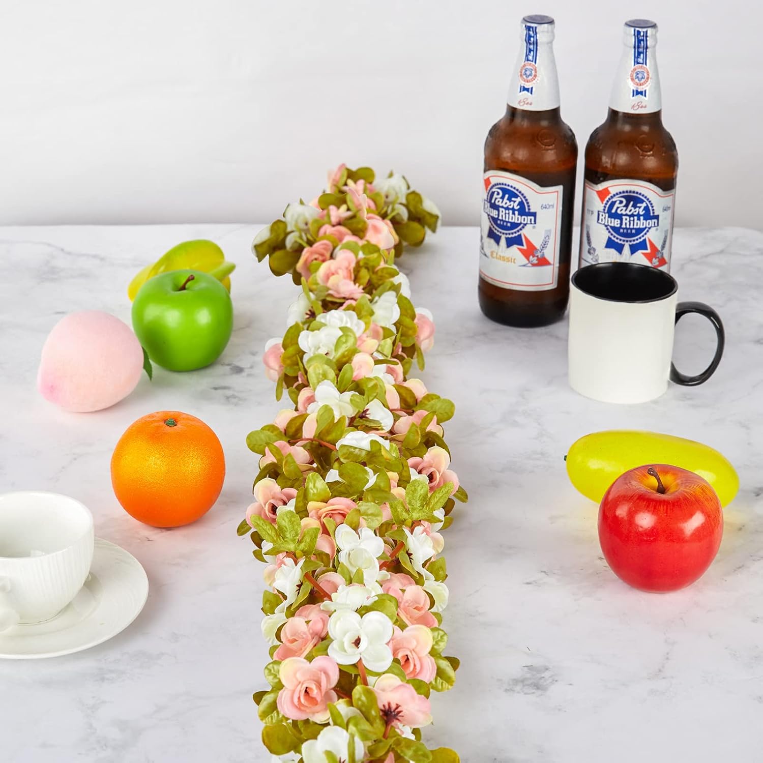 6 Pcs x 8.2 ft Flower Garland Artificial Rose Vine Flowers with Green Leaves Hanging Fake Roses Vine for Room Party Home Wedding Birthday Christmas Wall Arch Decor, Fall Pink Flower