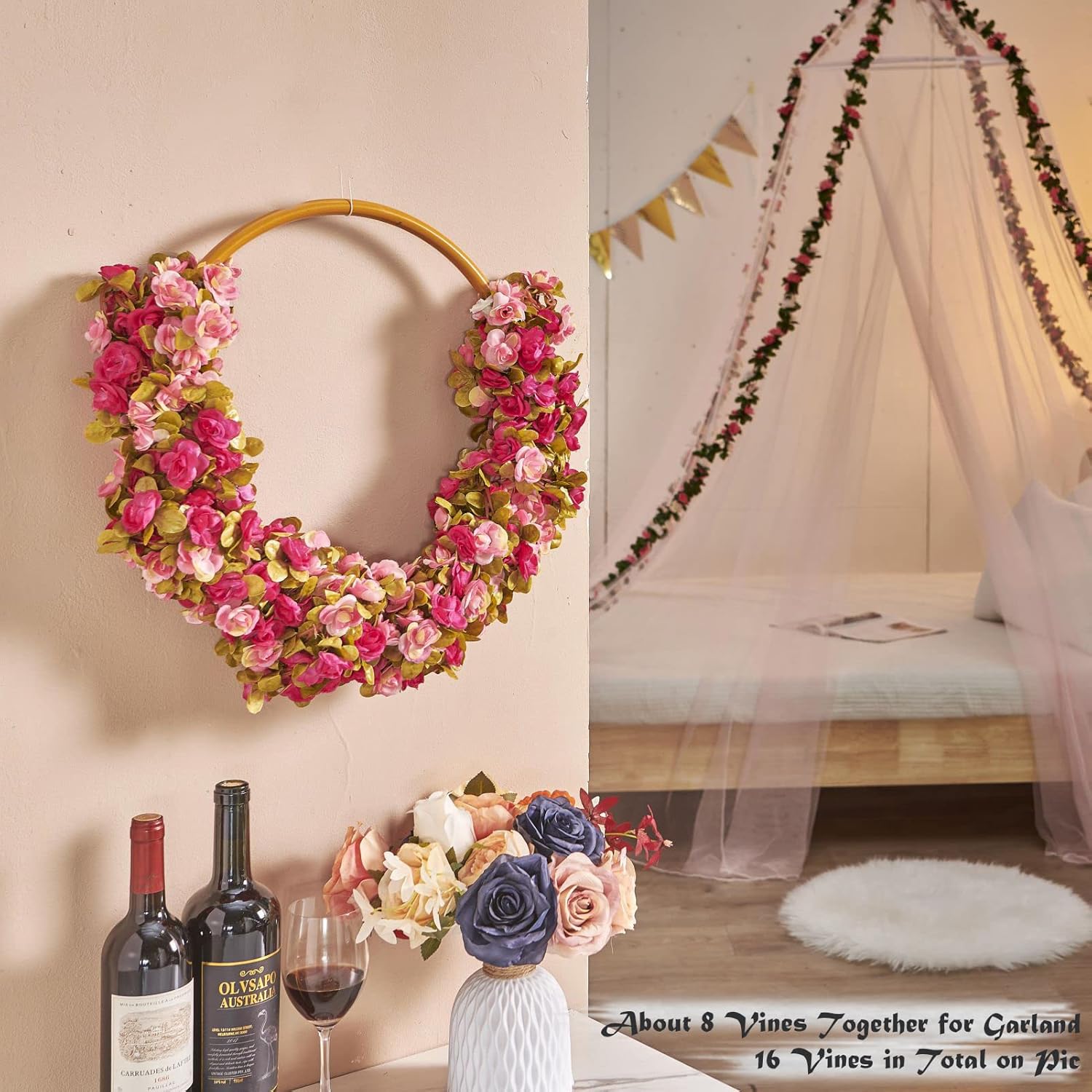 • Multi-use rose vine: With the vibrant color, PONKING fake rose vines are ideal for your wedding, party, vlentines, Christmas, birthday, DIY bouquets, arch home room decor, etc. They could also decorate your space with the string lights(not included). Adding more romantic atmosphere to you all