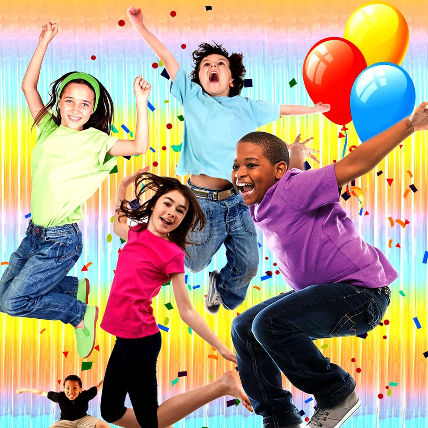 4 Pack Rainbow Foil Fringe Curtain Backdrop, 3.3Ft x 9.8Ft Colorful Metallic Tinsel Streamers Curtains, Wedding, Thanksgiving, Birthday, Christmas, Halloween Party Decoration