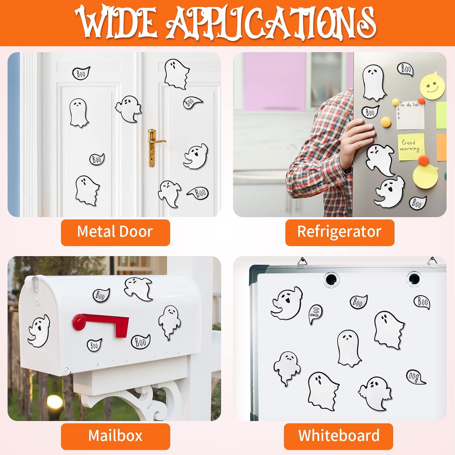 • Holiday theme: these garage door magnets decorations adopt holiday as the theme, containing classic images of ghost, as well as the word [Boo] in the dialog box shaped sticker, and they are reflective, which also can create a spooky atmosphere even at night