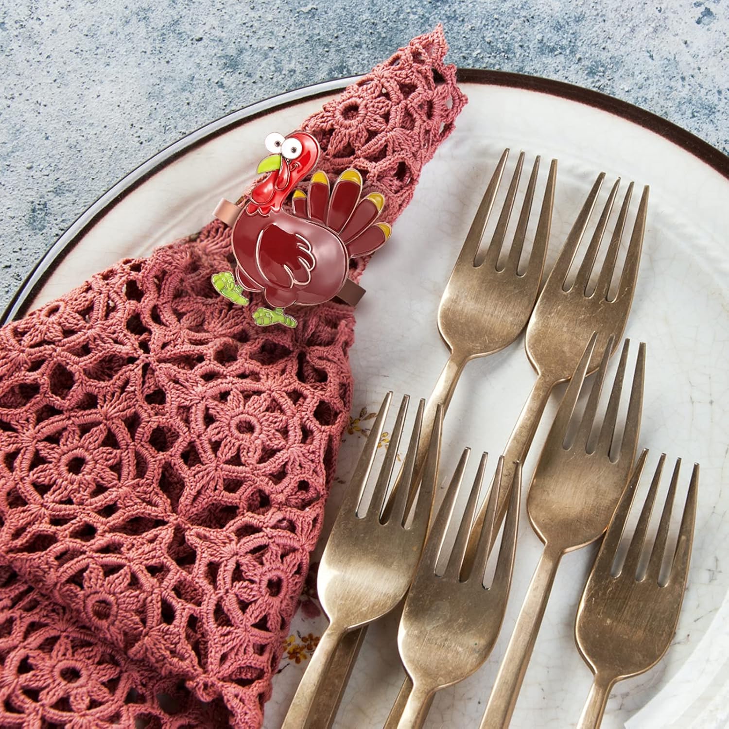 • Quality metal material: These turkey napkin ring are made of quality metal, which is durable and not easy to break or deform. The pattern desigh is vintage and the surface is also well polished, add the atmosphere of thanksgiving day for your table. After each time use, please clean the napkin ring and keep it in a dry place for next time use.