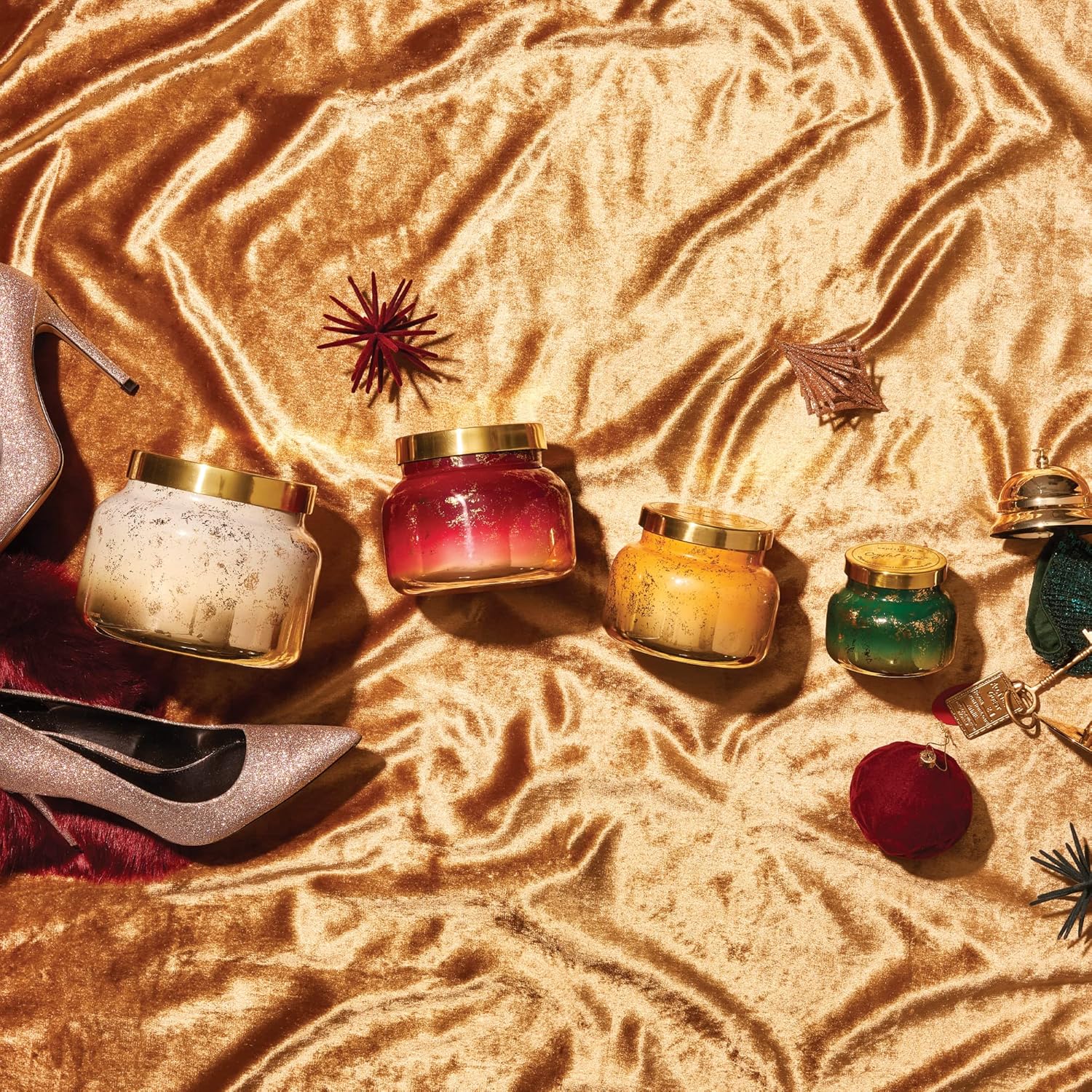 Capri Blue Glimmer Jar Candles - Luxury Holiday Scented Candles for Home - Long Lasting Soy Wax Blend - Scented Holiday & Home Decor - Tinsel & Spice Signature Jar (19 oz)