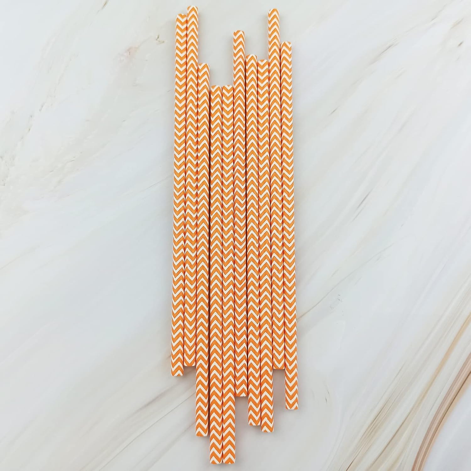 • 🎀Includes 100 pcs Orange Waves Striped party Paper Straws.