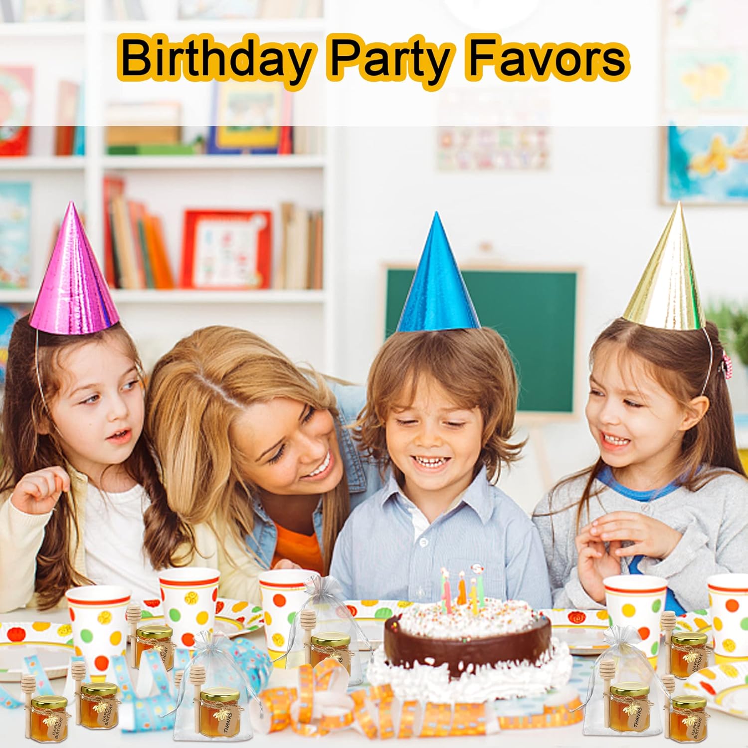 • Elegant Small Honey Jars for Party Favors: Like golden drops of sunshine, our mini honey jars with dippers become sweet keepsakes for weddings, baby showers, and more. The 1.5 oz glass honey jars with lids add a charming touch to heartfelt celebrations.