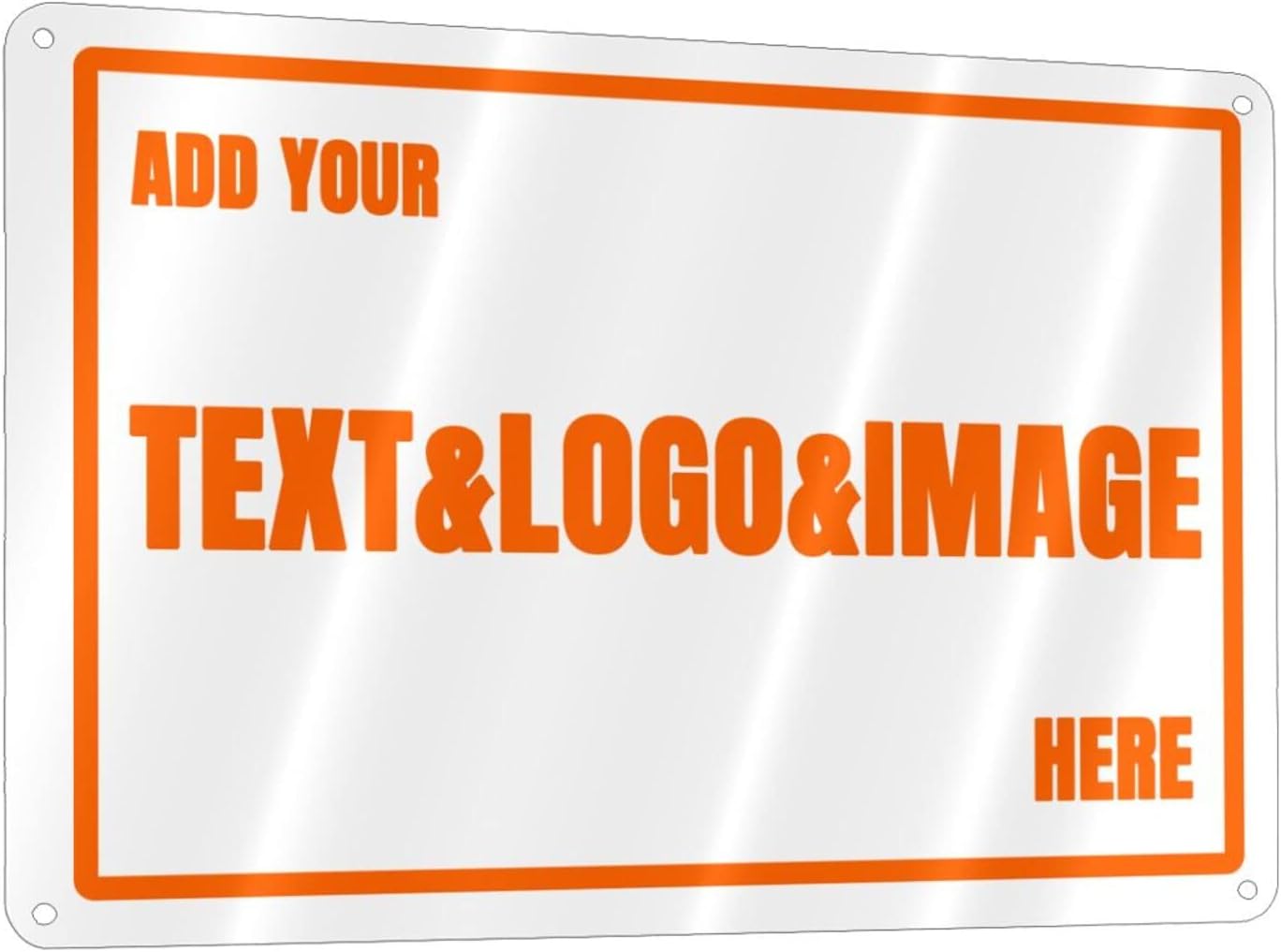 Custom Signs Outdoor Metal - 12 x 8 Customized Personalized Aluminum Signs for Office, Home, Business, Decor, Custom Rust-Proof Sign (Orange Text Box)