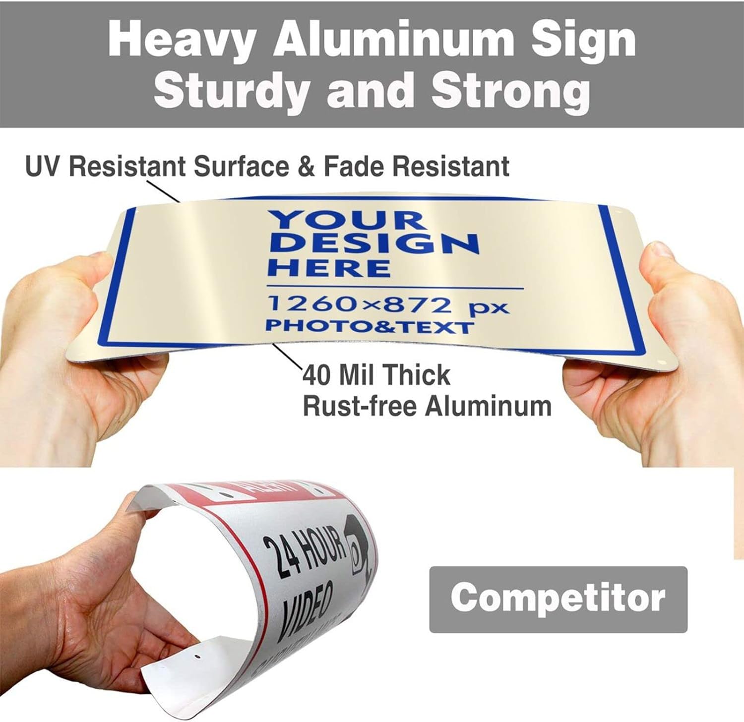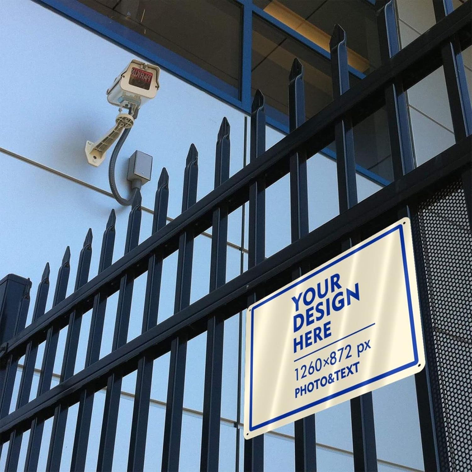 • 12 x 8 inch aluminum custom metal sign with 4 pre-drilled holes on the side that can be easily attached to any surface such as walls, doors or fences with cable ties or screws.