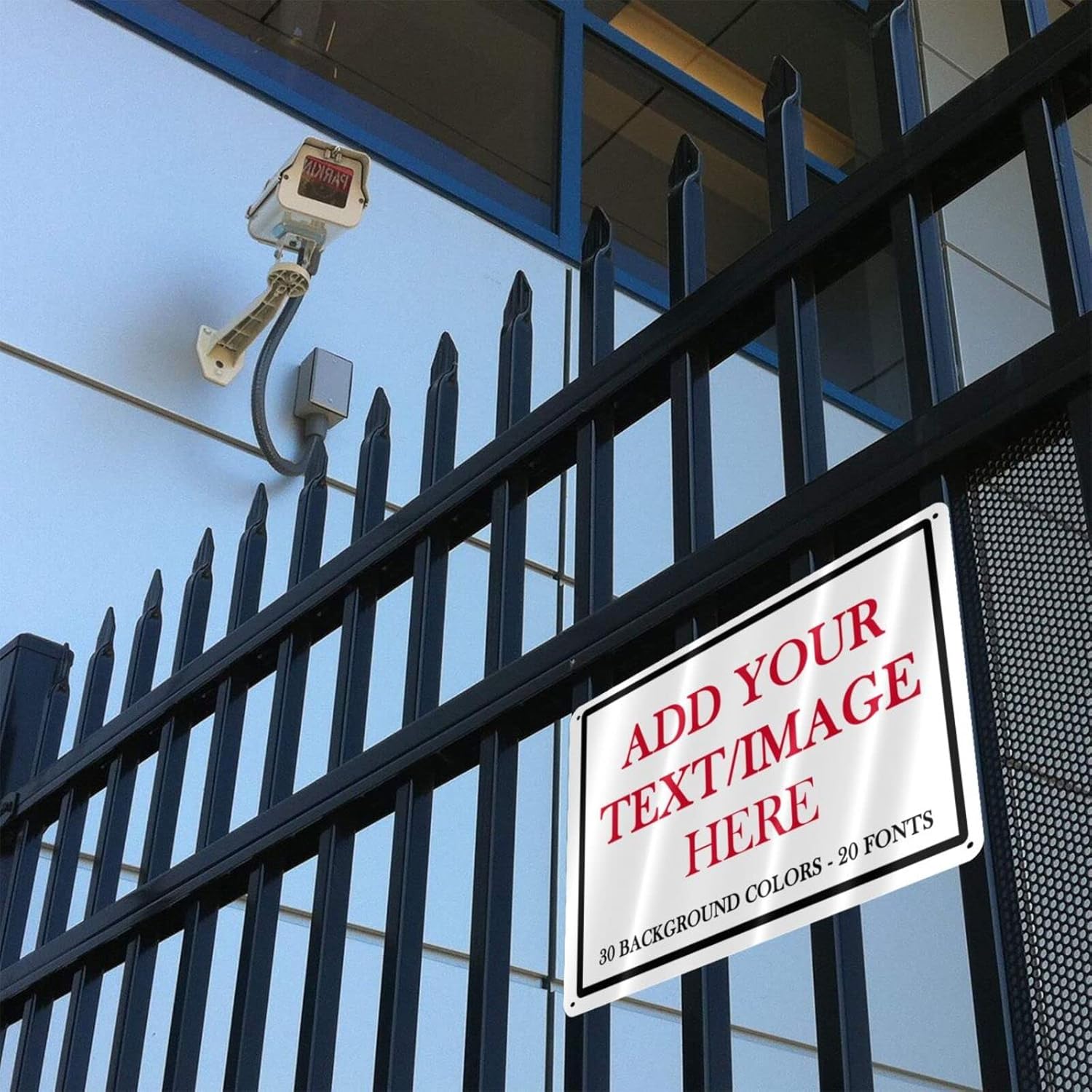 • 12 x 8 inch aluminum custom metal sign with 4 pre-drilled holes on the side that can be easily attached to any surface such as walls, doors or fences with cable ties or screws.